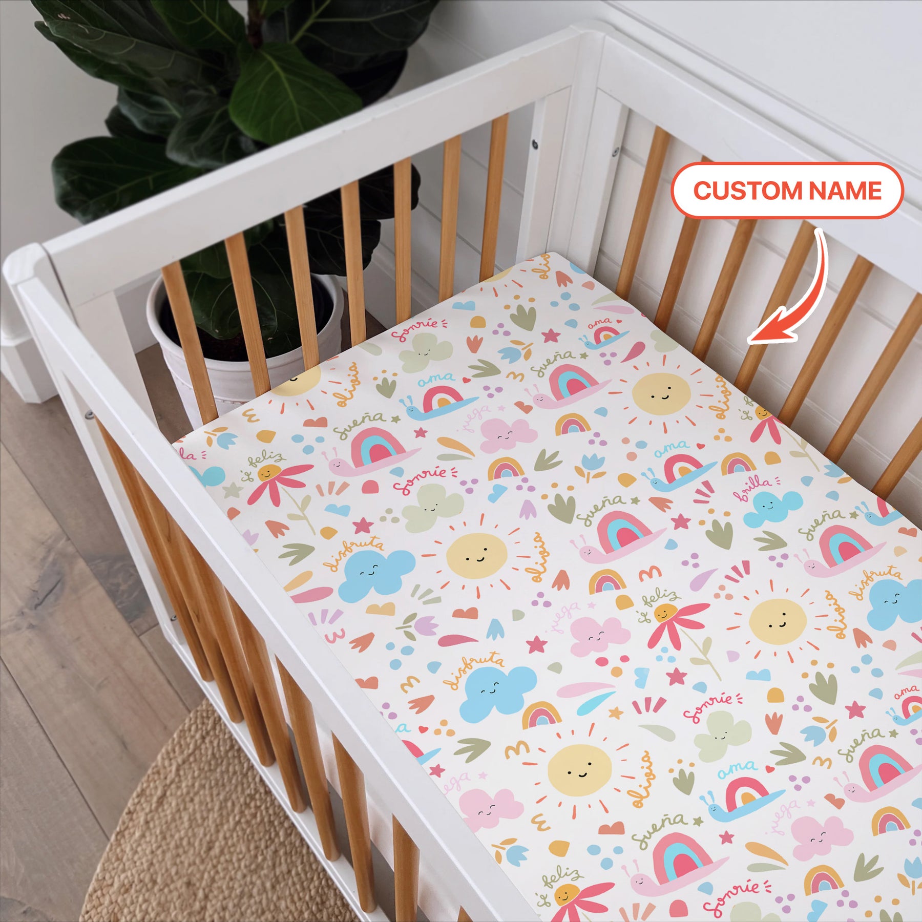 Custom Name Positive Spring Garden Fitted Crib Sheet