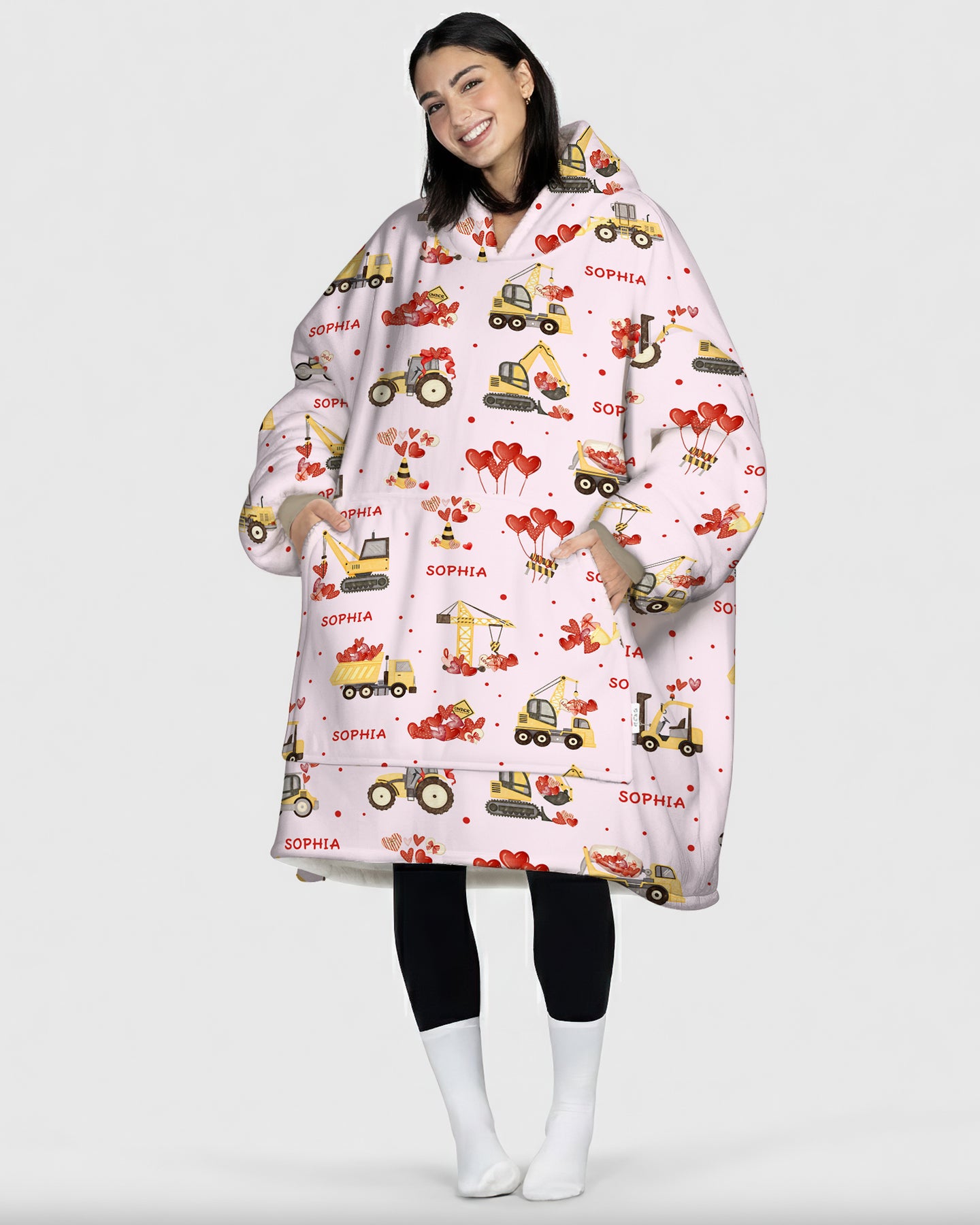 Custom Name Valentine Trucks Family Matching Blanket Hoodie
