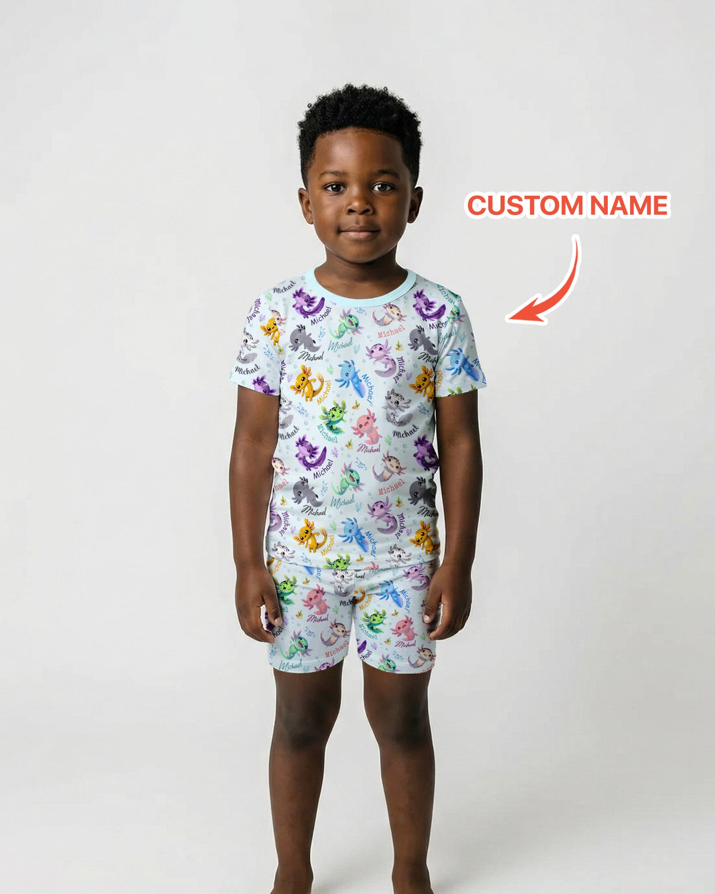 Add your child’s custom name for a personal touch that makes each piece uniquely theirs. The cute swimming axolotls, soft pastel tones, and gentle ocean elements create a sweet, whimsical world perfect for babies and toddlers.