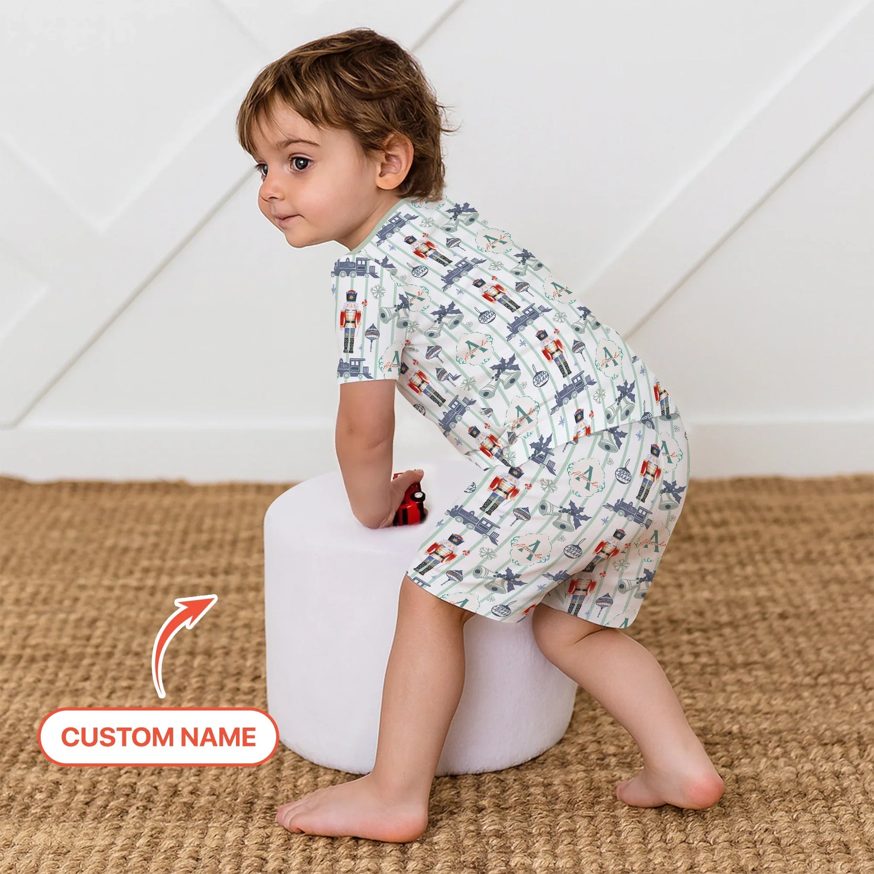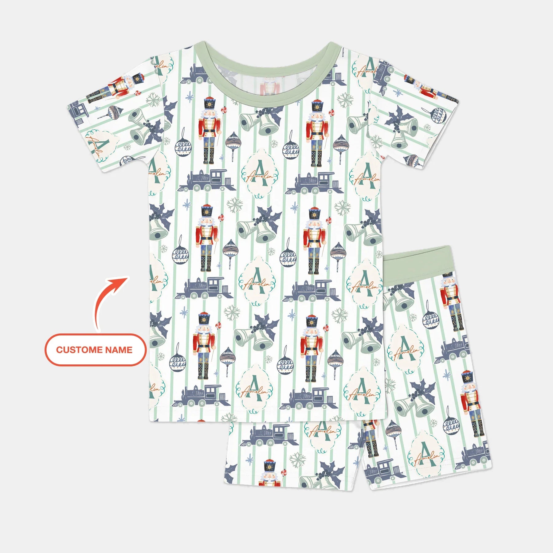 Custom Nutcracker Medium Blue Two Piece Short Sleeve Shorts Pajama Set , Custom Nutcracker Medium Blue Two Piece Short Sleeve Shorts Pajama Set - 12-18M