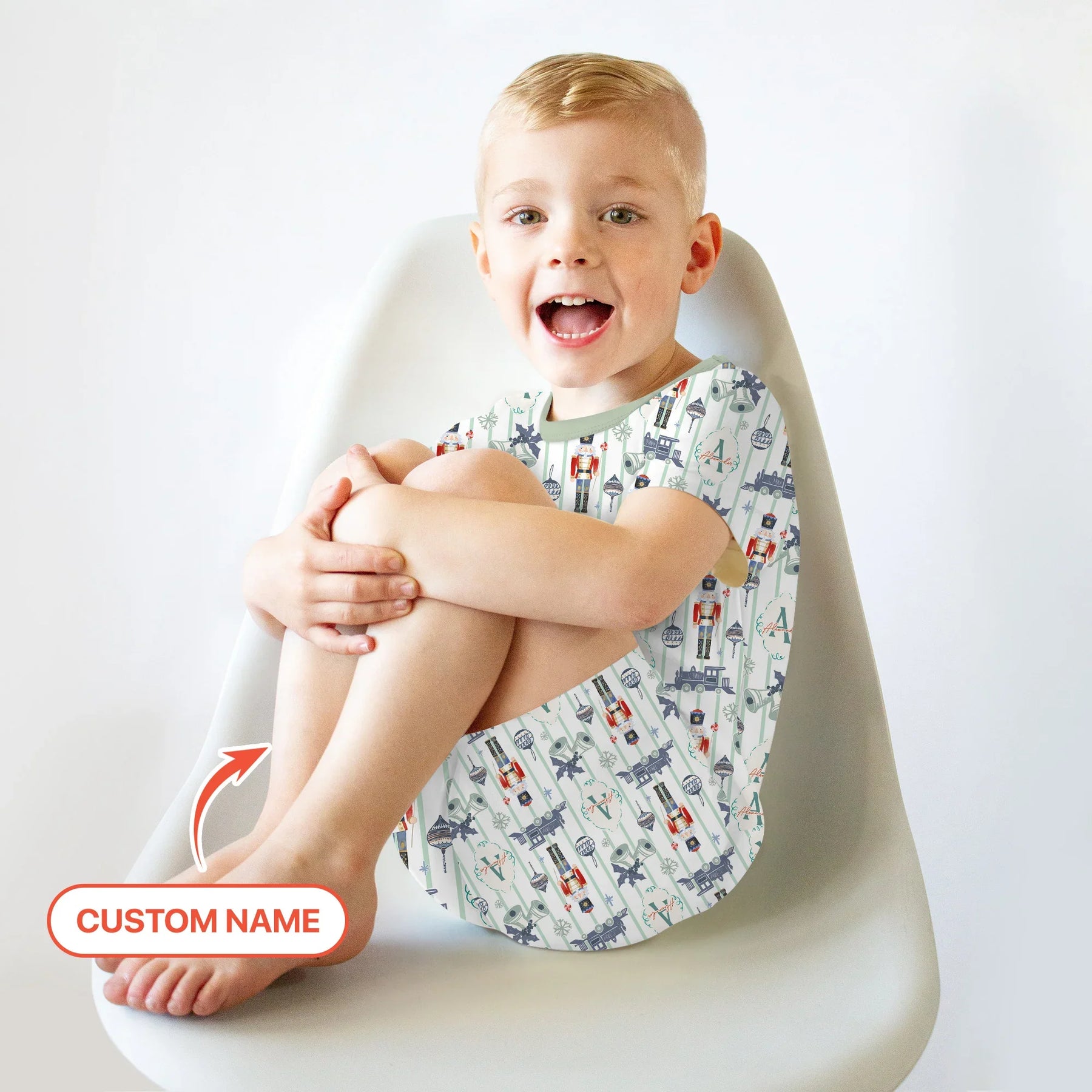 Each piece is personalized with your child’s name, making it as special as their own winter fairytale. The delicate pattern features nutcrackers, candy canes, ribbons, and Christmas treats — all wrapped in a palette of gentle blush and festive charm.