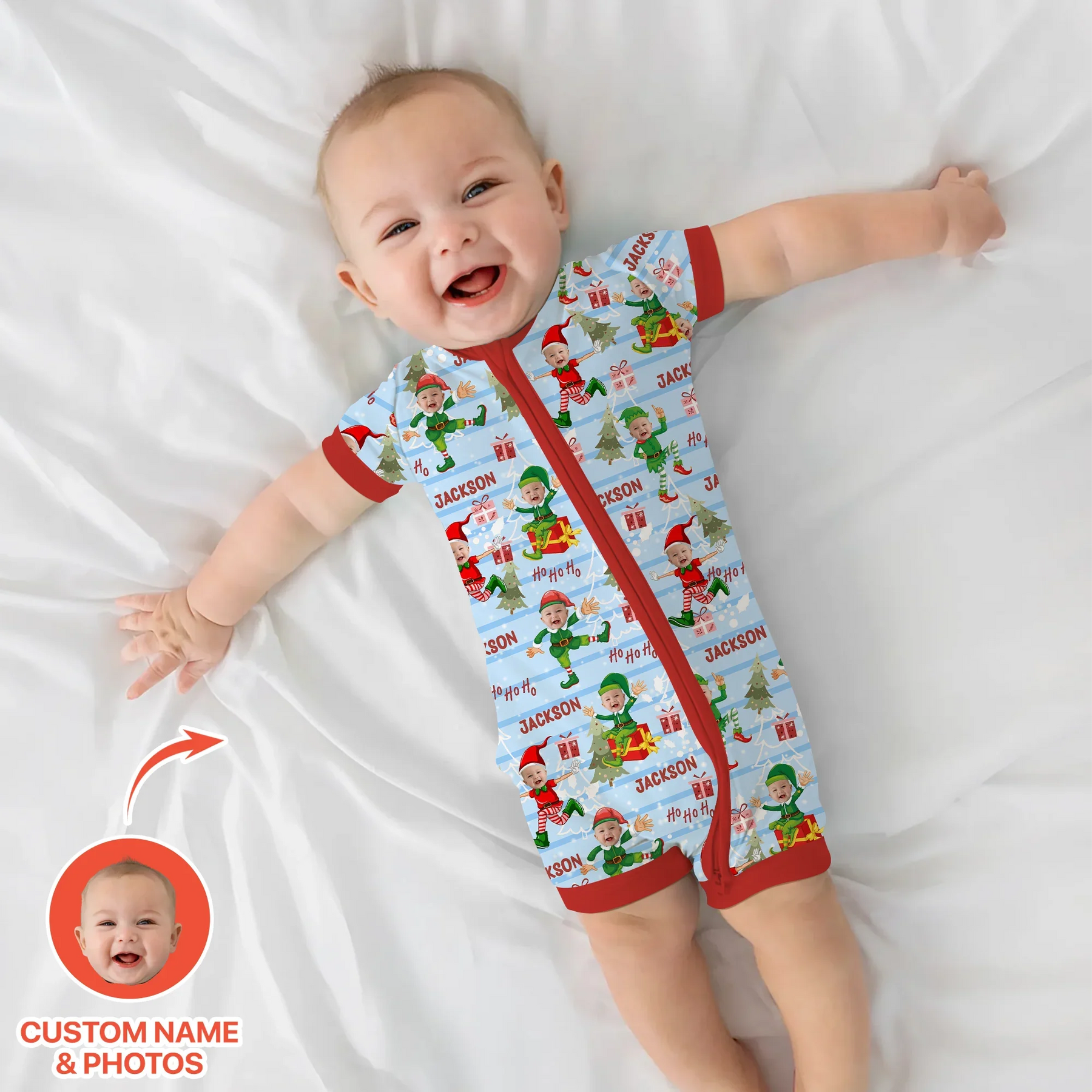 Custom Photo Baby Christmas Elf Christmas Shorty Zippy