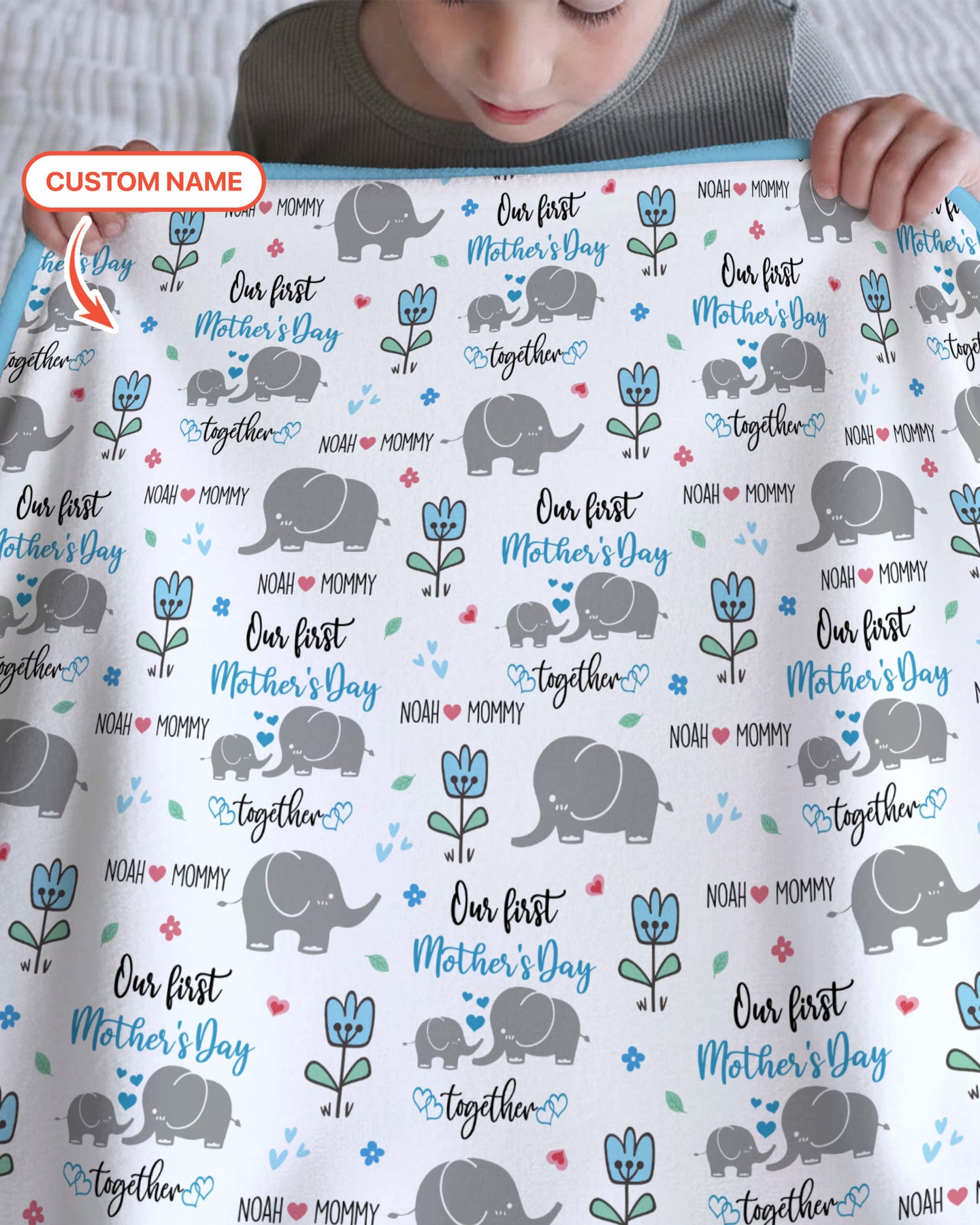 Custom Name Elephant Our First Mother's Day Blanket