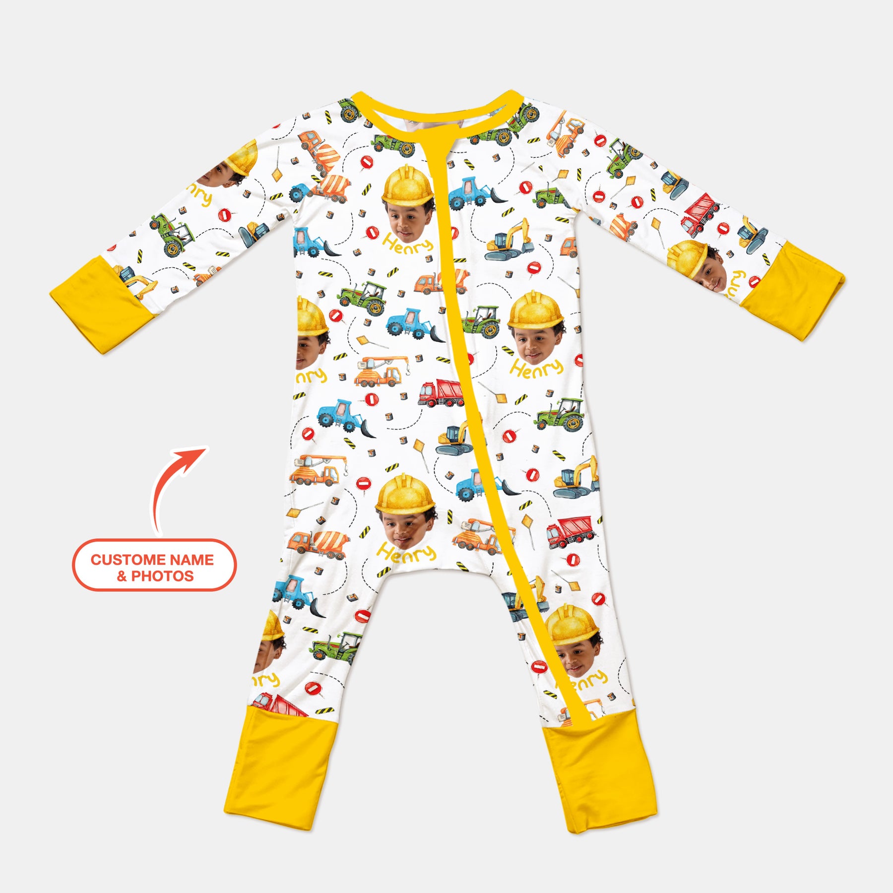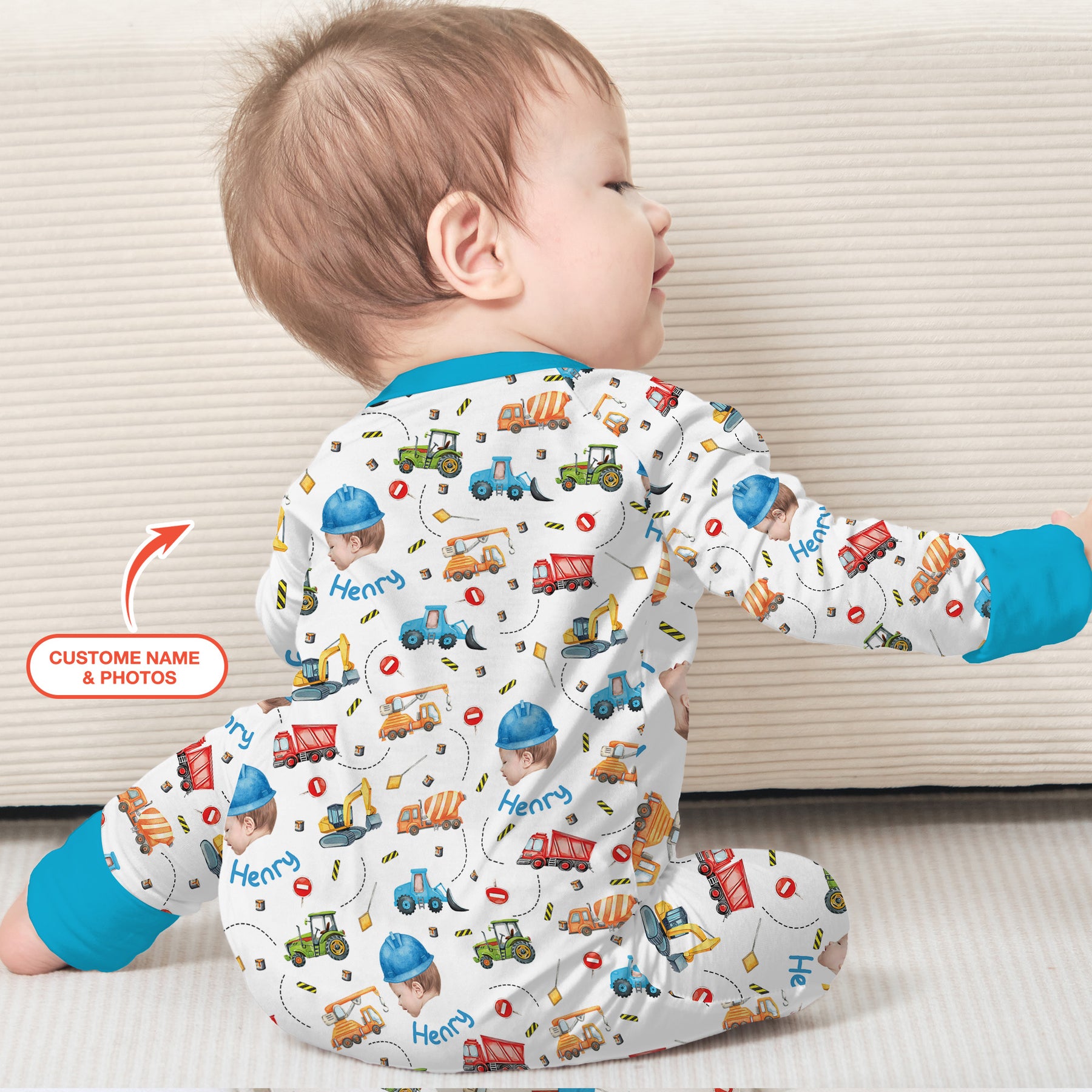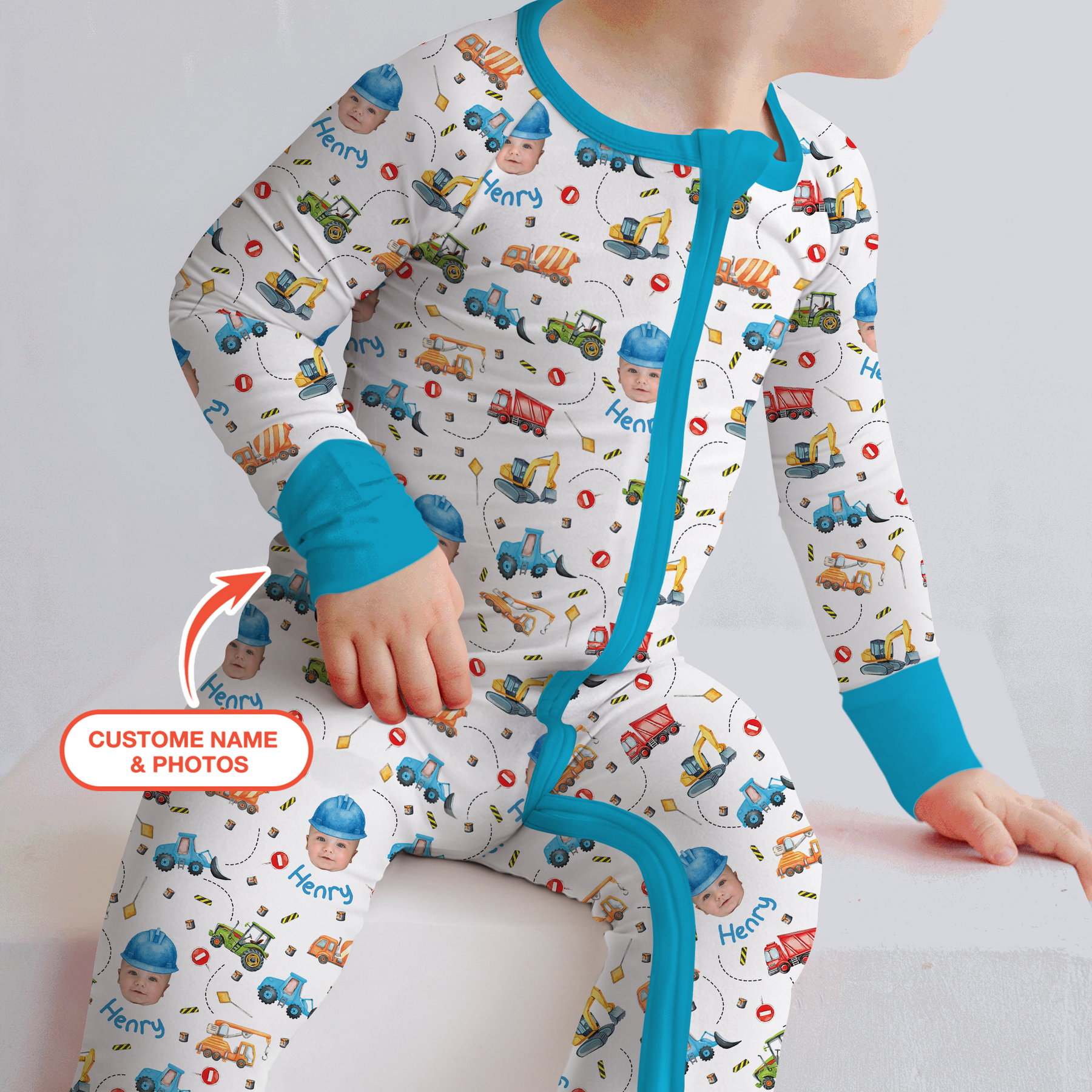 Turn bedtime into a playful worksite with the Custom Photo Little Construction Heroes Collection — where your little builder becomes the star of the project!