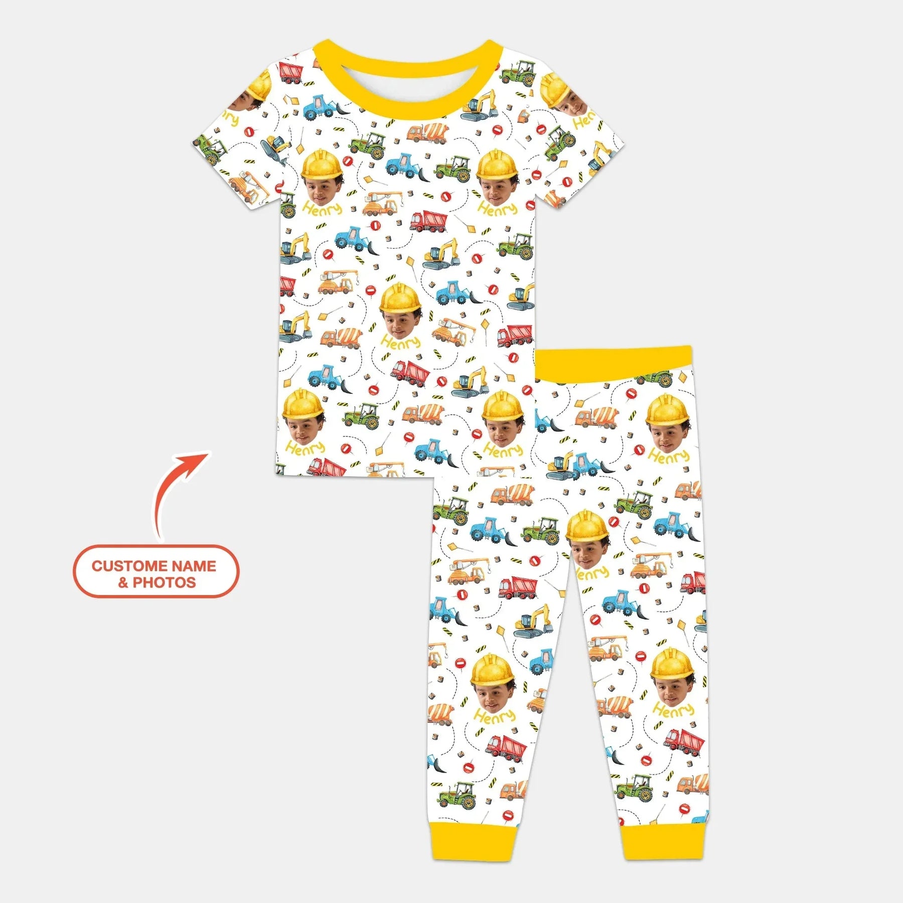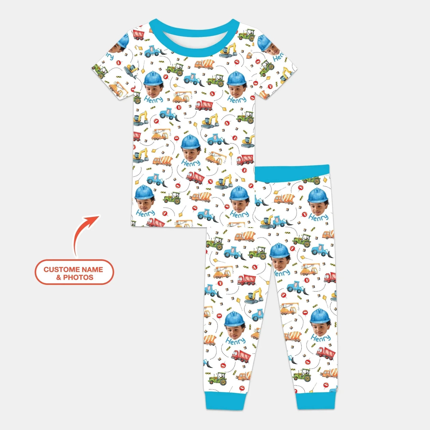 Custom Photo Little Construction Heroes Bamboo Two Piece Short Sleeve Pajama Set
