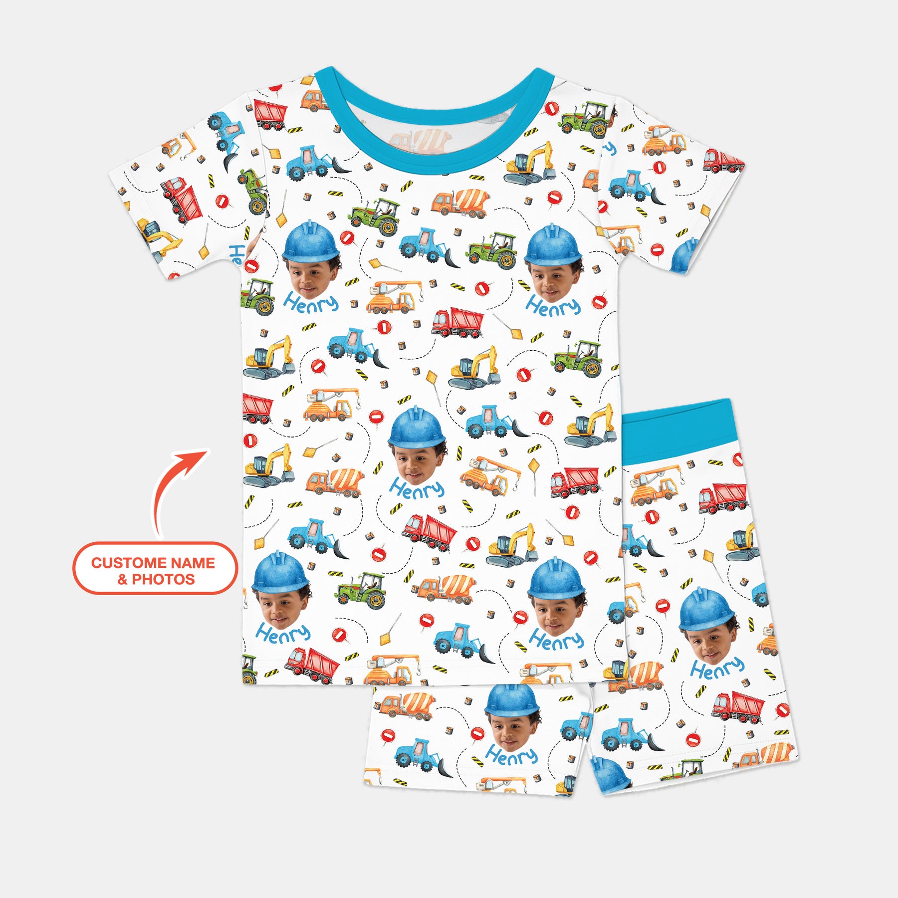 Custom Photo Little Construction Heroes Two Piece Short Sleeve Shorts Pajama Set