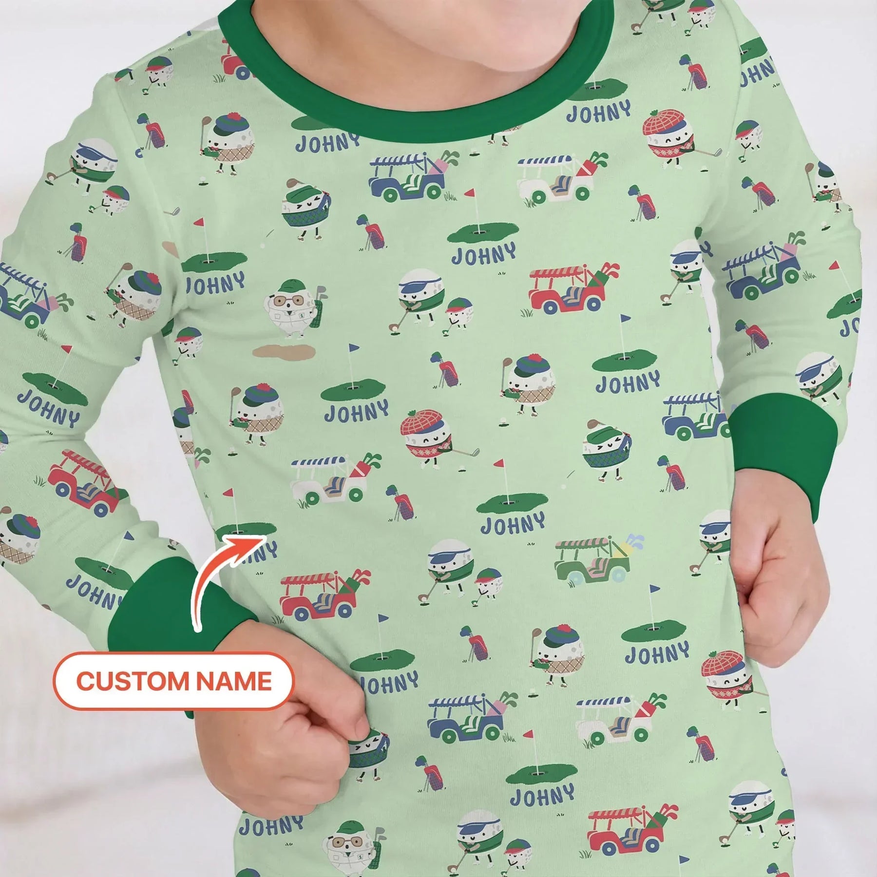 Hit the green in cozy style with our custom name golf pajama collection. Featuring playful golf balls, carts, and course-inspired prints in two color options, this collection is made from ultra-soft, breathable fabric for all-day comfort. Perfect for little golfers, personalized gifts, and matching family moments on and off the course.