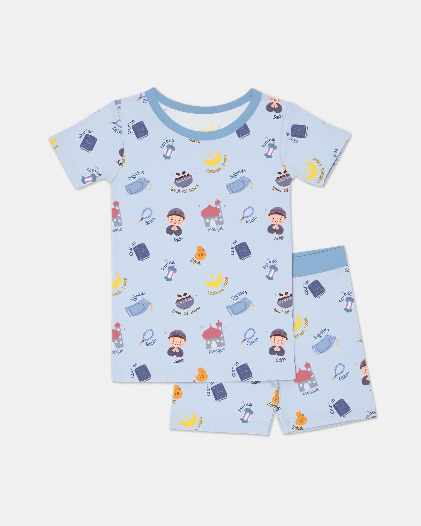 Cute Ramadhan Mubarak Two Piece Short Sleeve Shorts Pajama Set