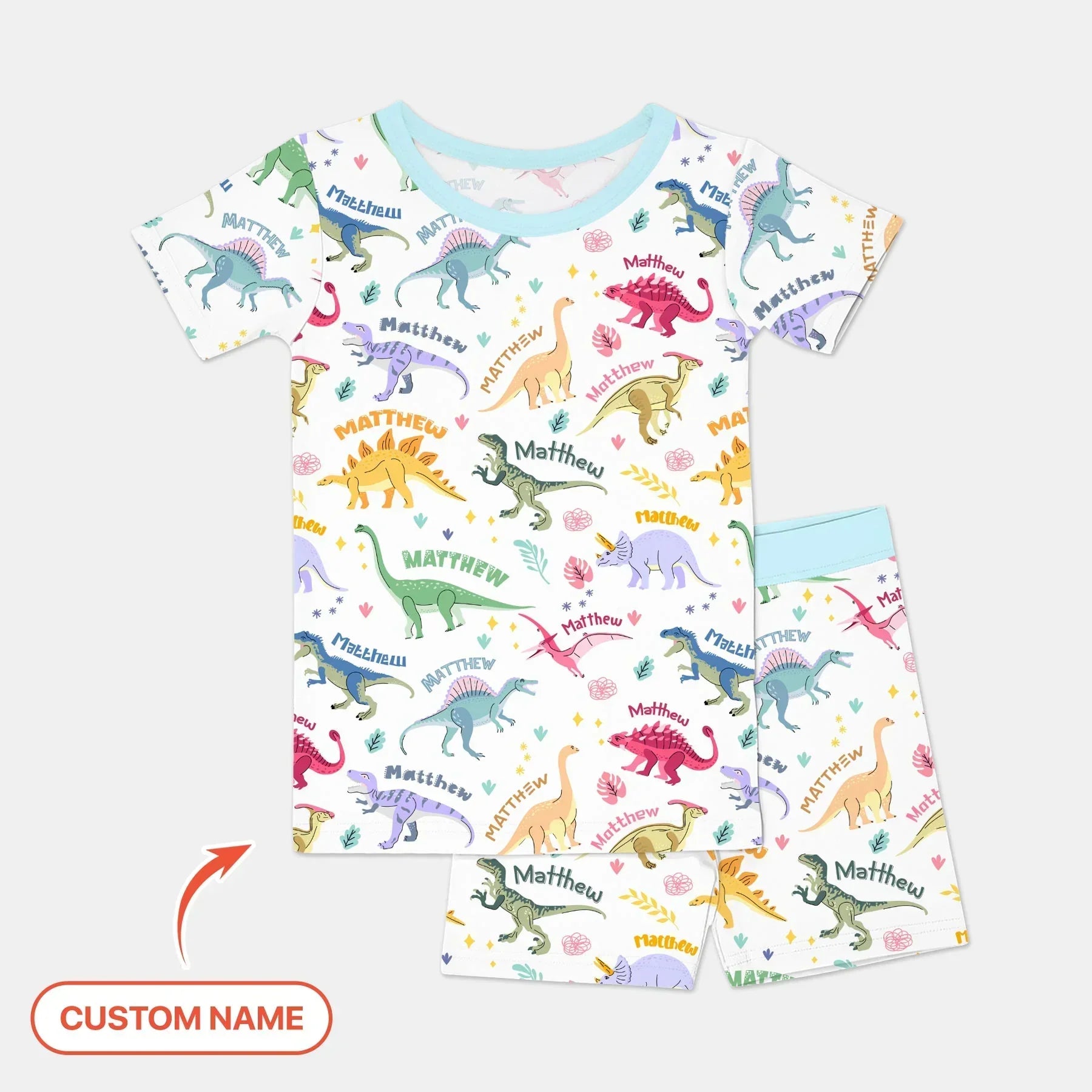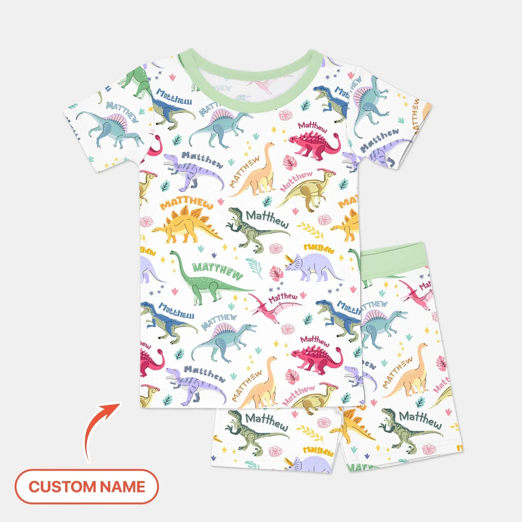 Dino Roar Custom Name Bamboo Two Piece Short Sleeve Shorts Pajama Set