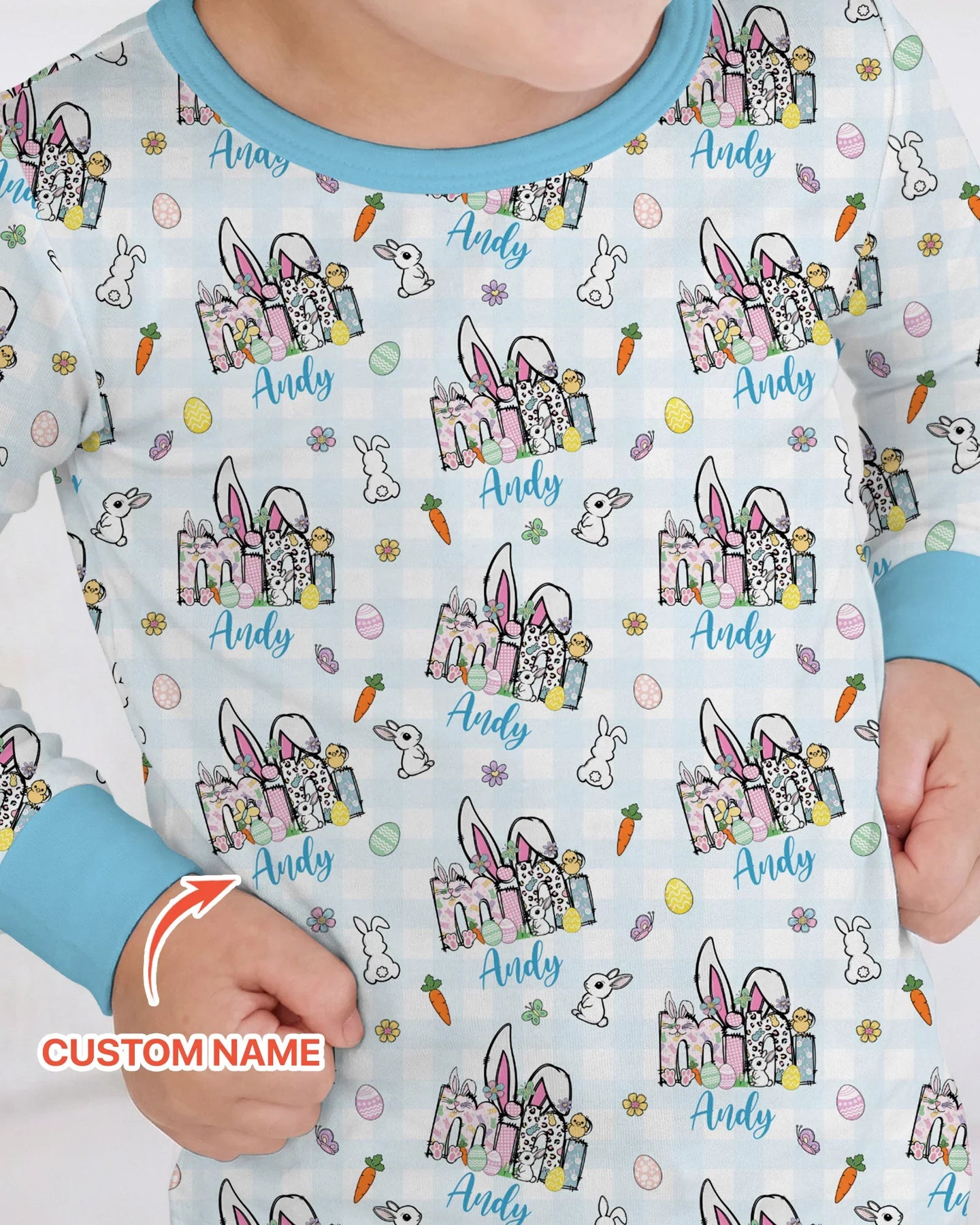 Custom Name Easter Family Matching Two Piece Long Sleeve Pajama Set