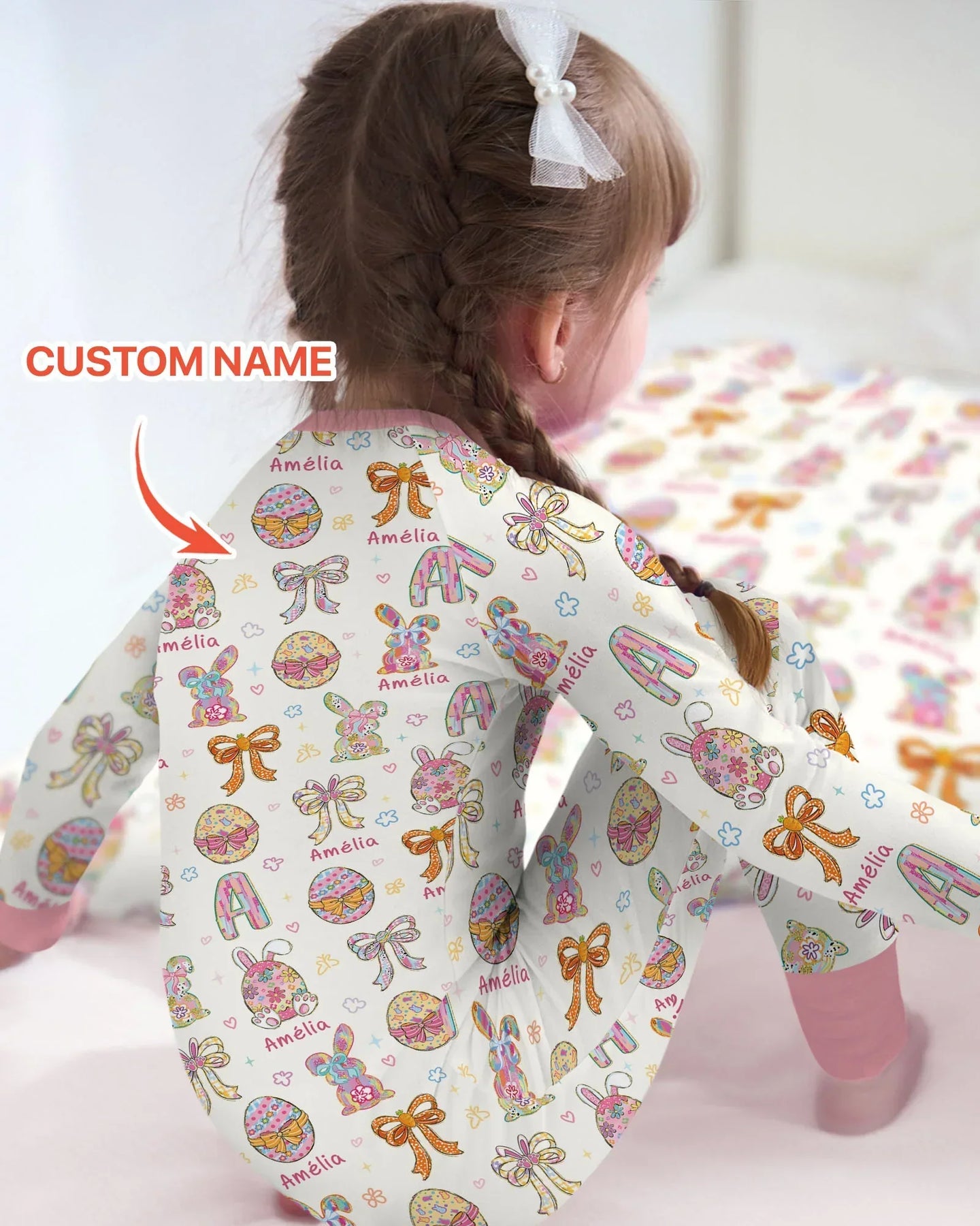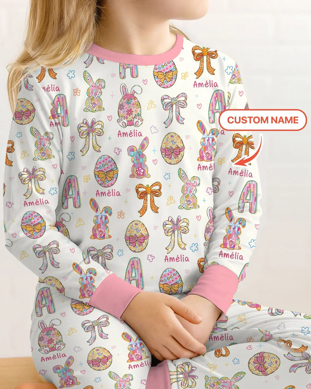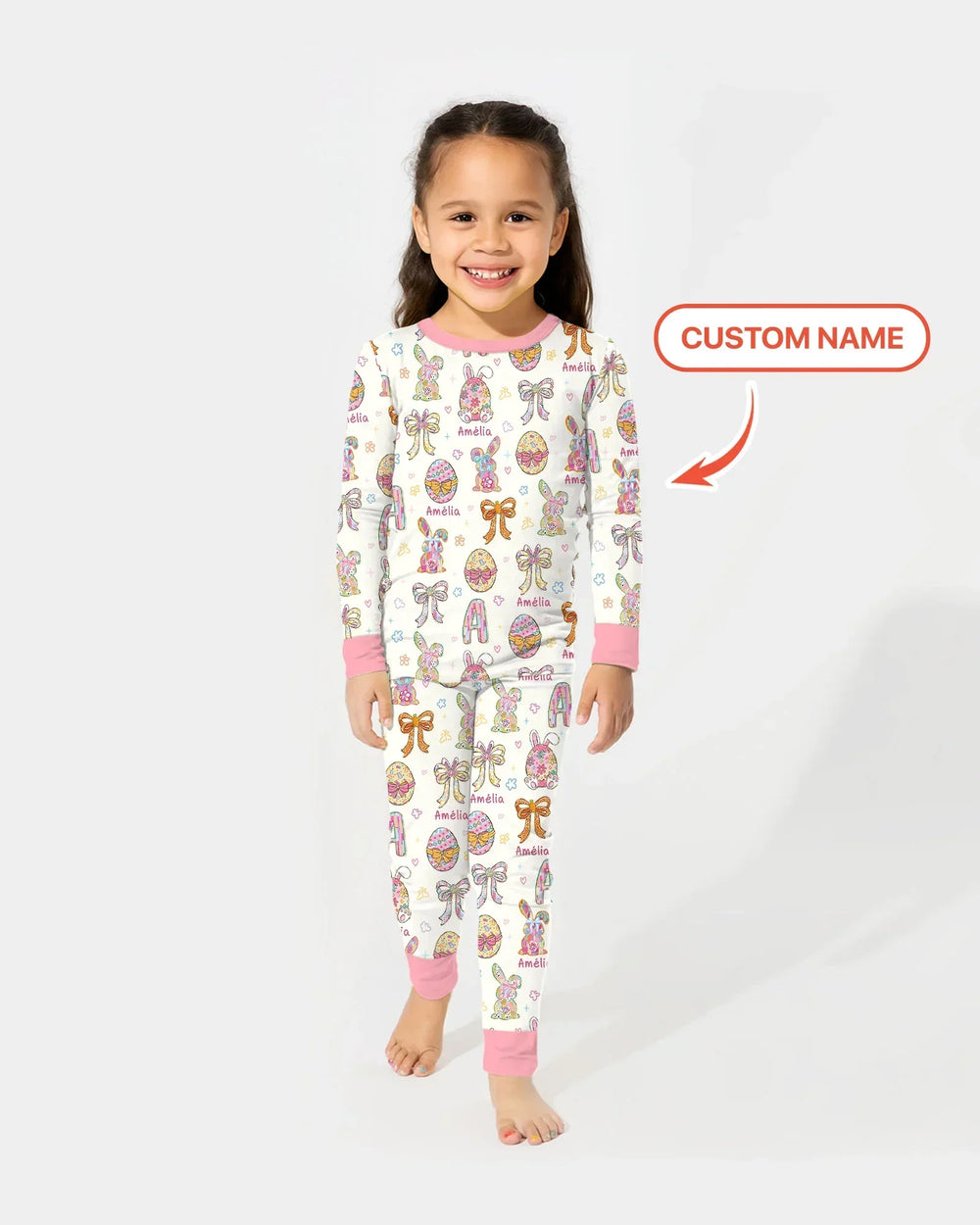 Each piece is personalized with your child’s name, beautifully blended into the print to create a one-of-a-kind outfit they’ll love. The custom detail adds a special touch, turning everyday pajamas into a memorable keepsake for Easter morning.