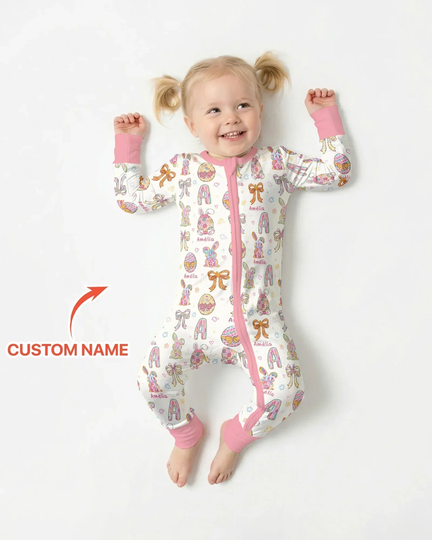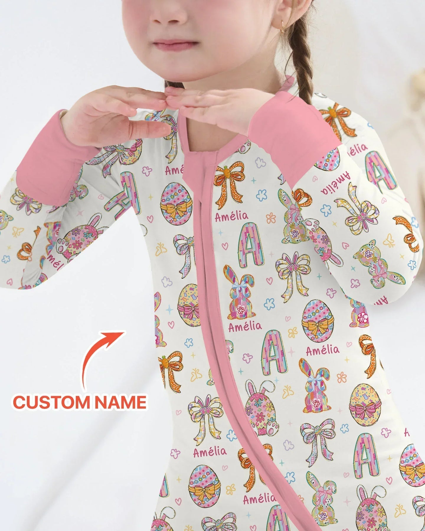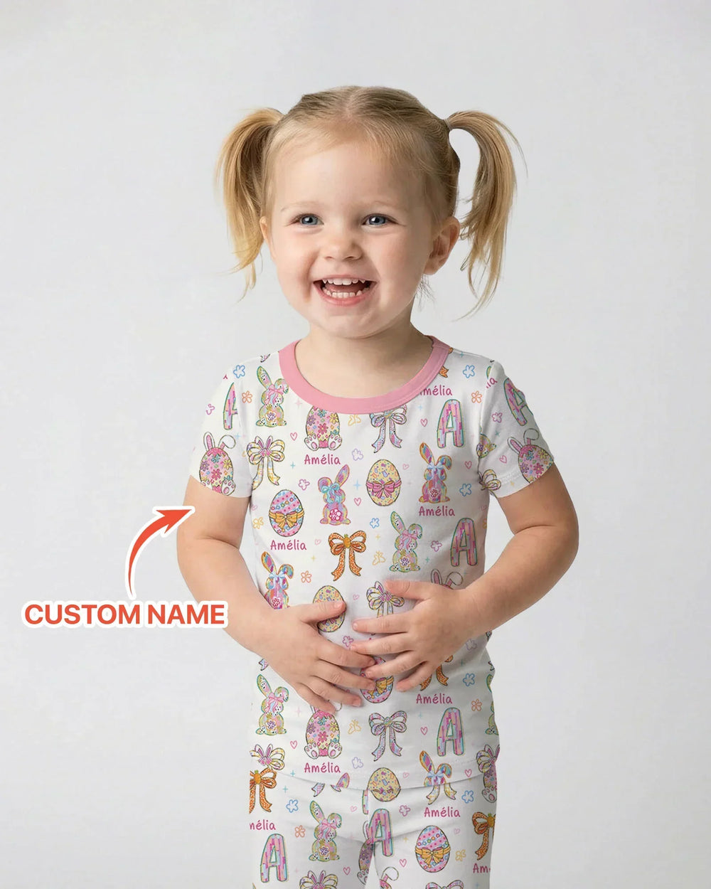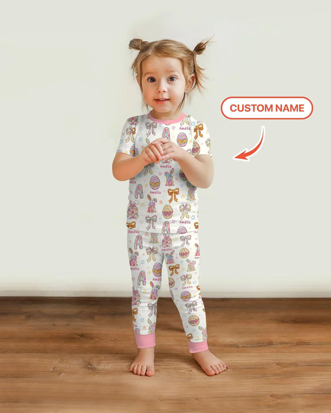 Each piece is personalized with your child’s name, beautifully blended into the print to create a one-of-a-kind outfit they’ll love. The custom detail adds a special touch, turning everyday pajamas into a memorable keepsake for Easter morning.