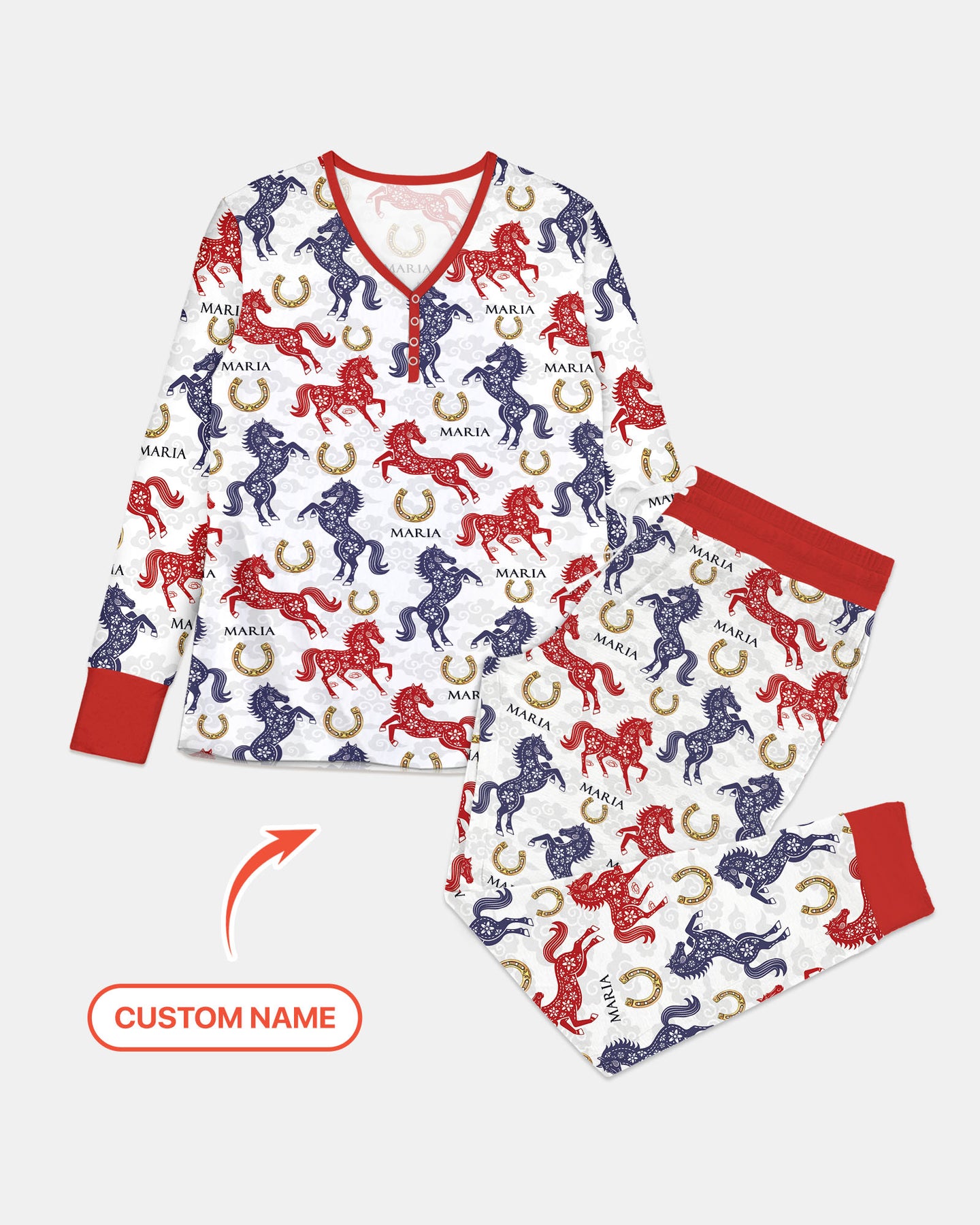 Custom Name Chinoiserie Horses Women Pajama Set