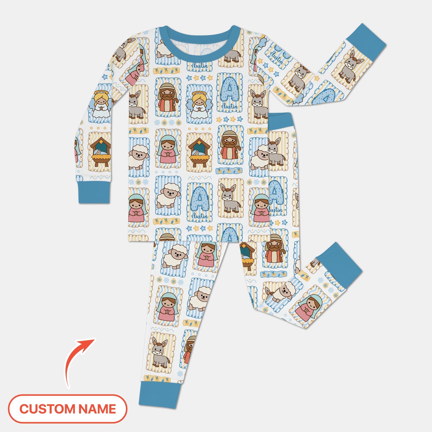 Custom Name Christmas Nativity Two Piece Long Sleeve Pajama Set