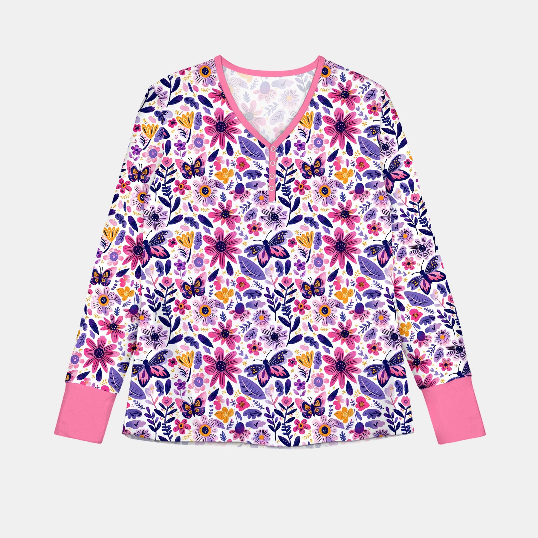 The product featuring delicate hand-drawn flowers and fluttering butterflies in soft pink and purple hues, creating a dreamy garden-inspired look. Designed to bring a sweet, cozy feeling to bedtime, perfect for gentle nights and playful dreams.