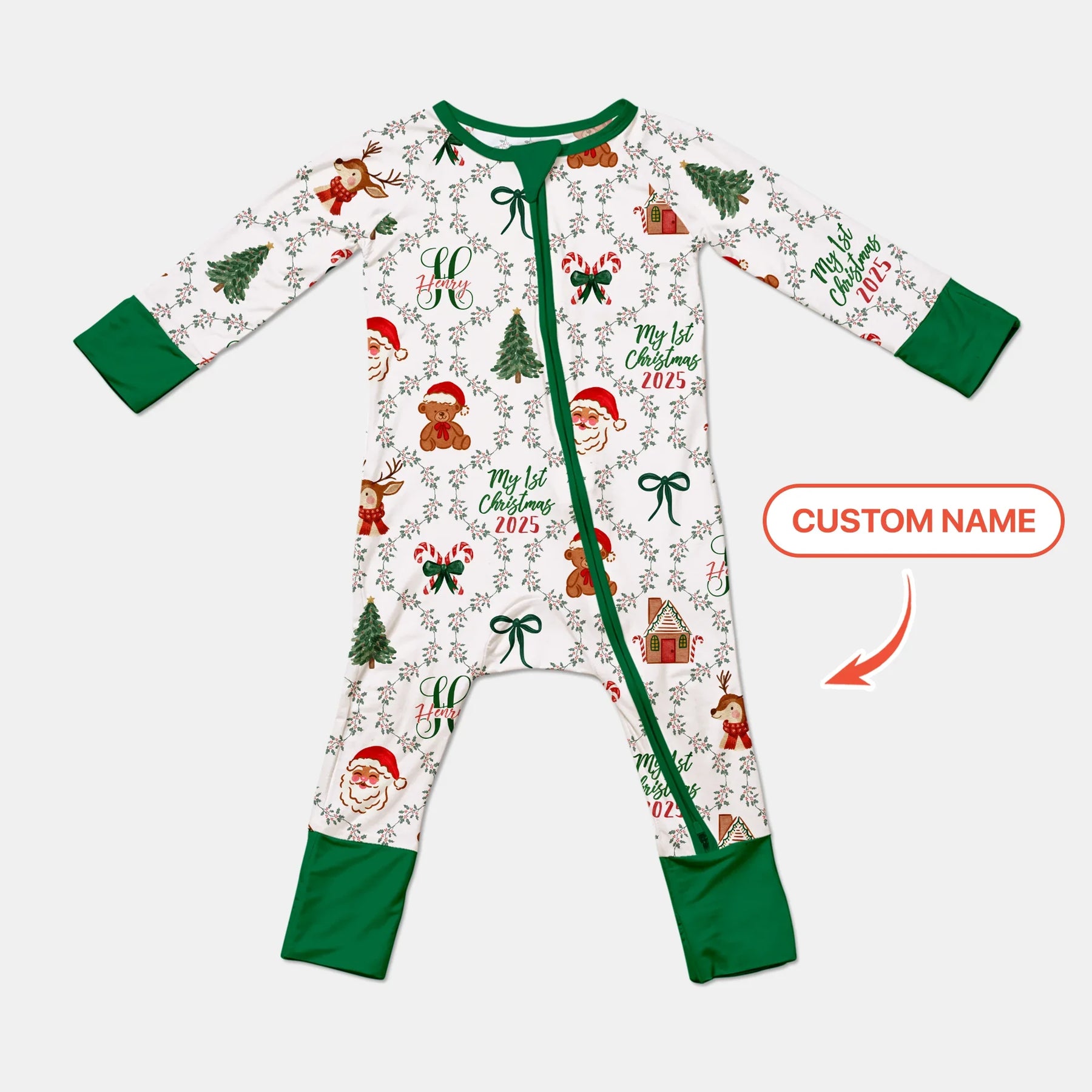 Celebrate the season in style with our Custom name "Fancy Monogram Christmas 2025". Made from buttery-soft bamboo fabric, these festive PJs are breathable, cozy, and gentle on sensitive skin. Add your child’s name for a magical holiday keepsake.