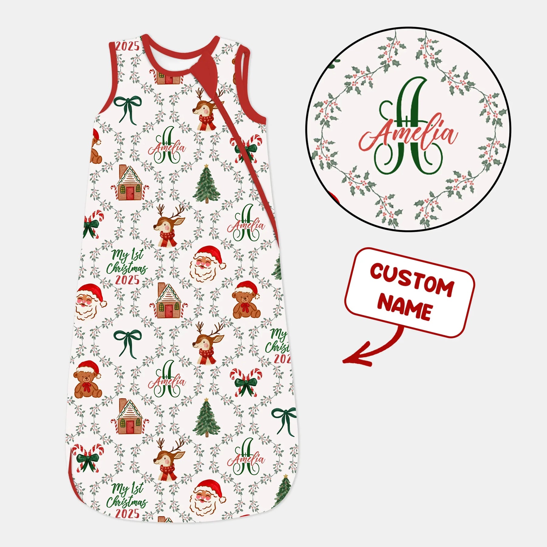 Custom name "Fancy Monogram Red Christmas 2025" Sleep Bag