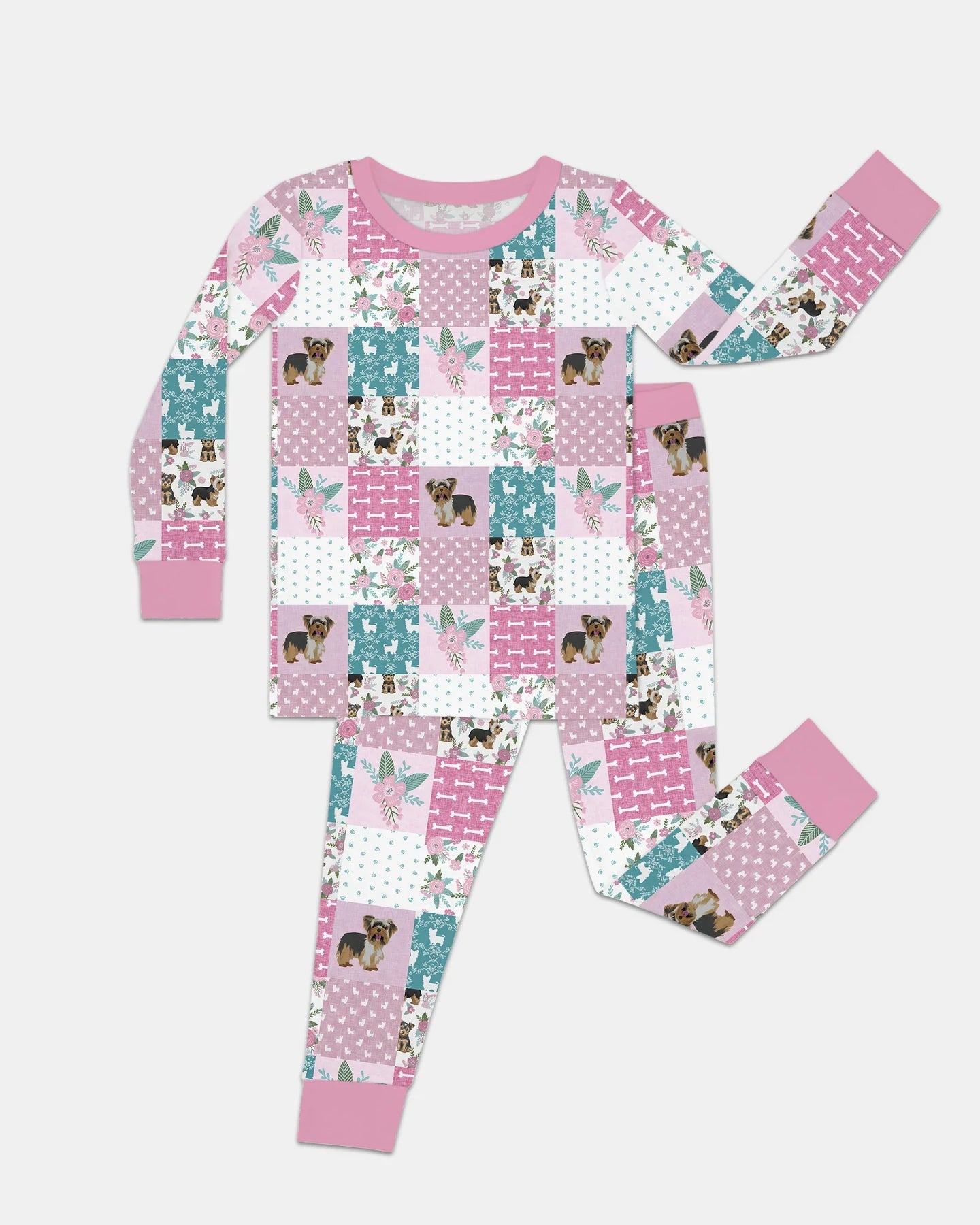 Floral Yorkie Grace Two Piece Long Sleeve Pajama Set