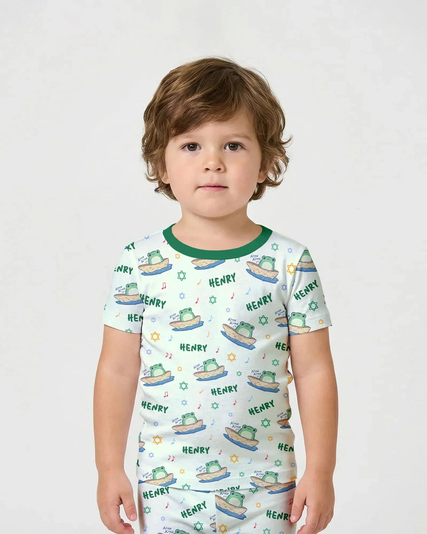 Frogs Here, Frogs There Passover Custom Name Two Piece Short Sleeve Shorts Pajama Set