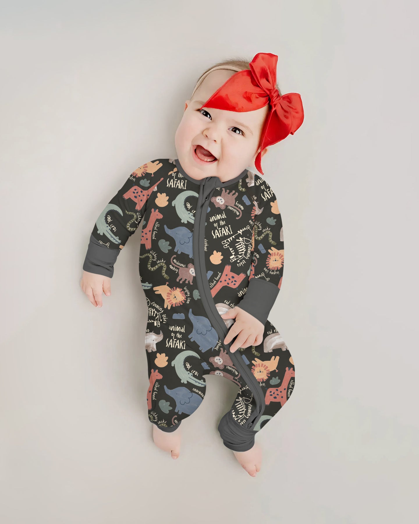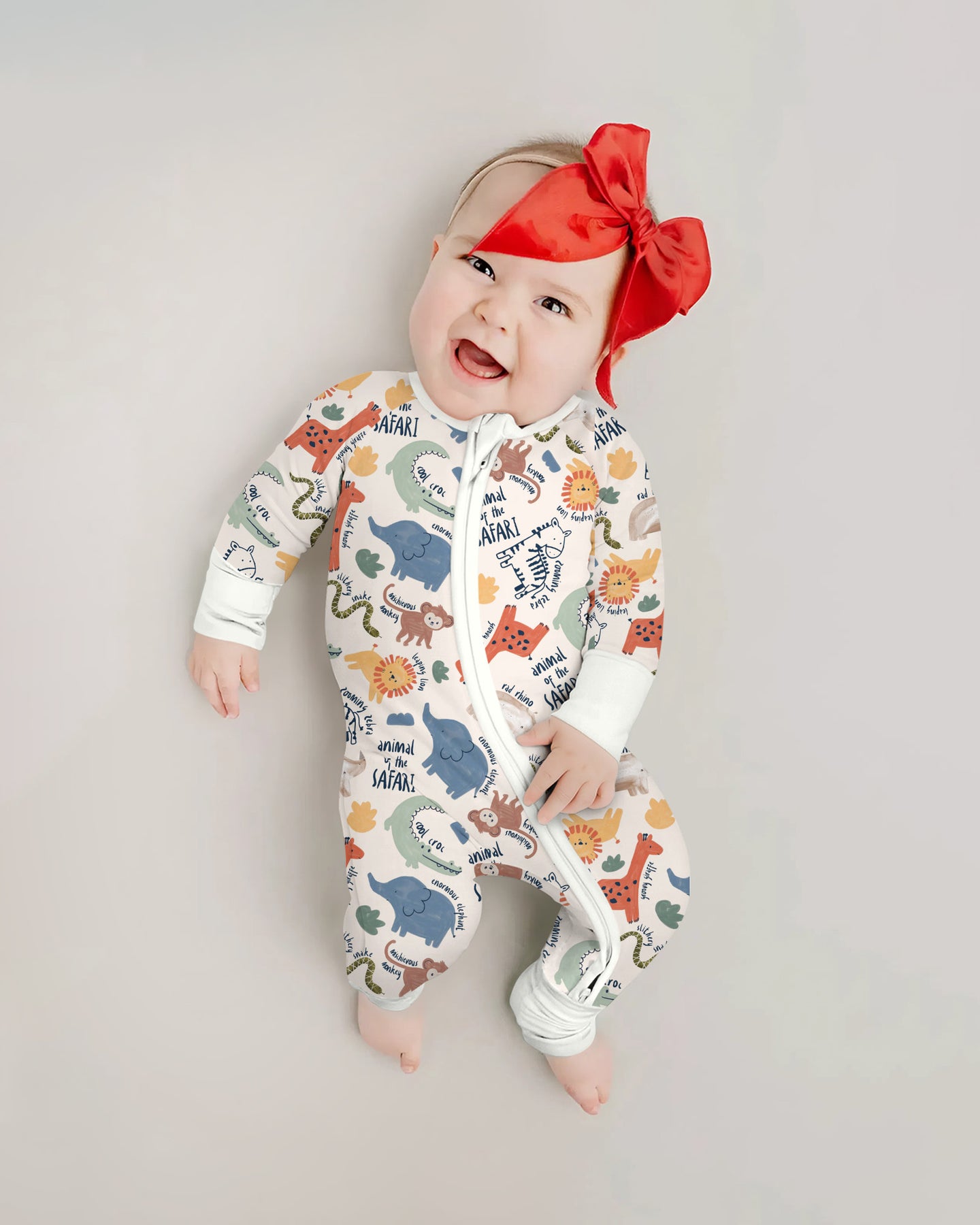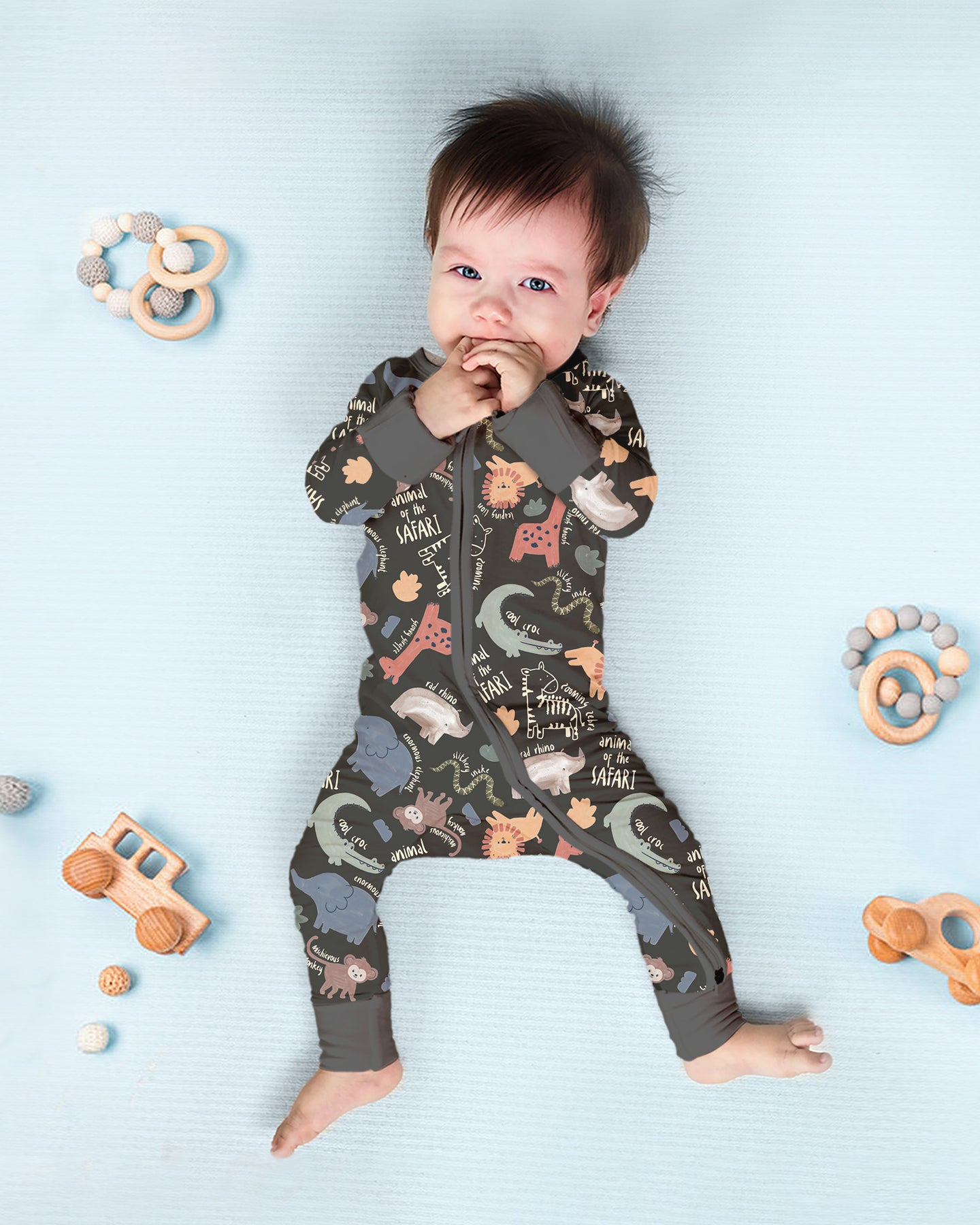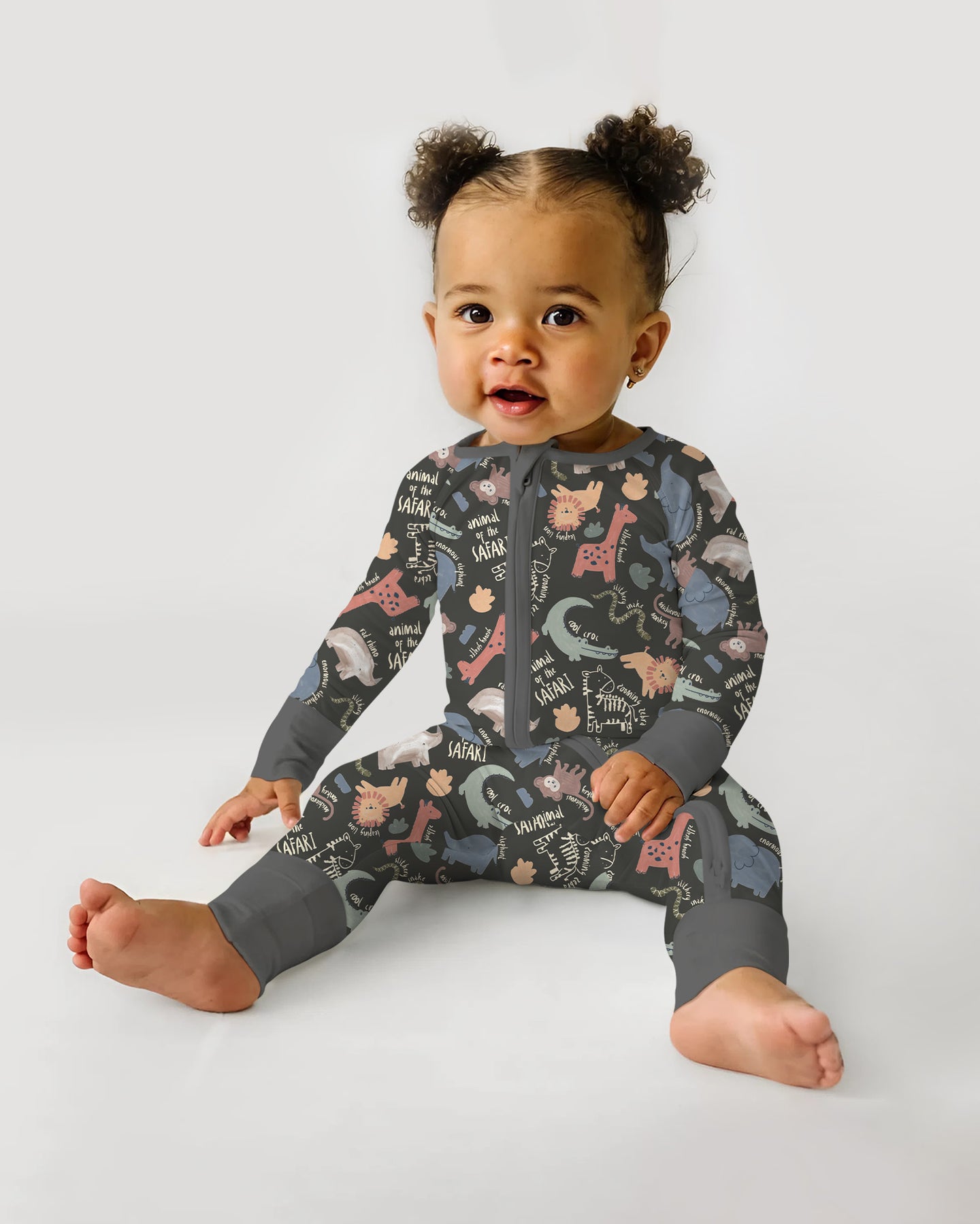 A cheerful safari-themed collection featuring playful animal illustrations and soft neutral tones, crafted for breathable comfort across kids’ sleepwear, loungewear, and everyday essentials.