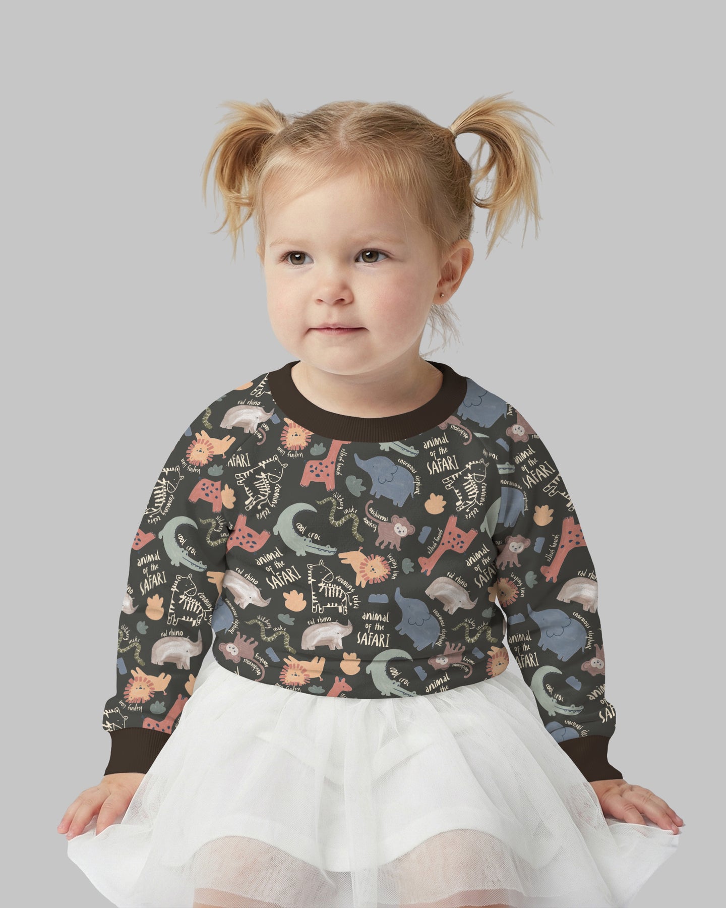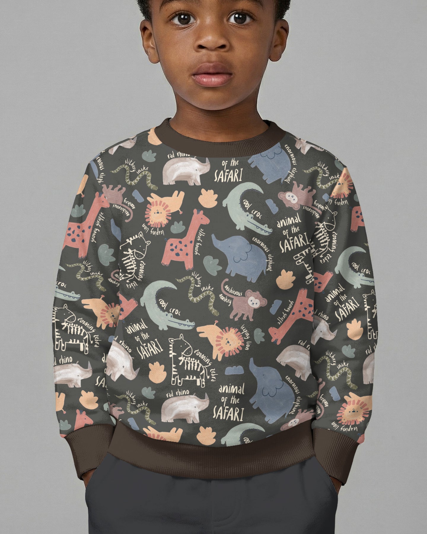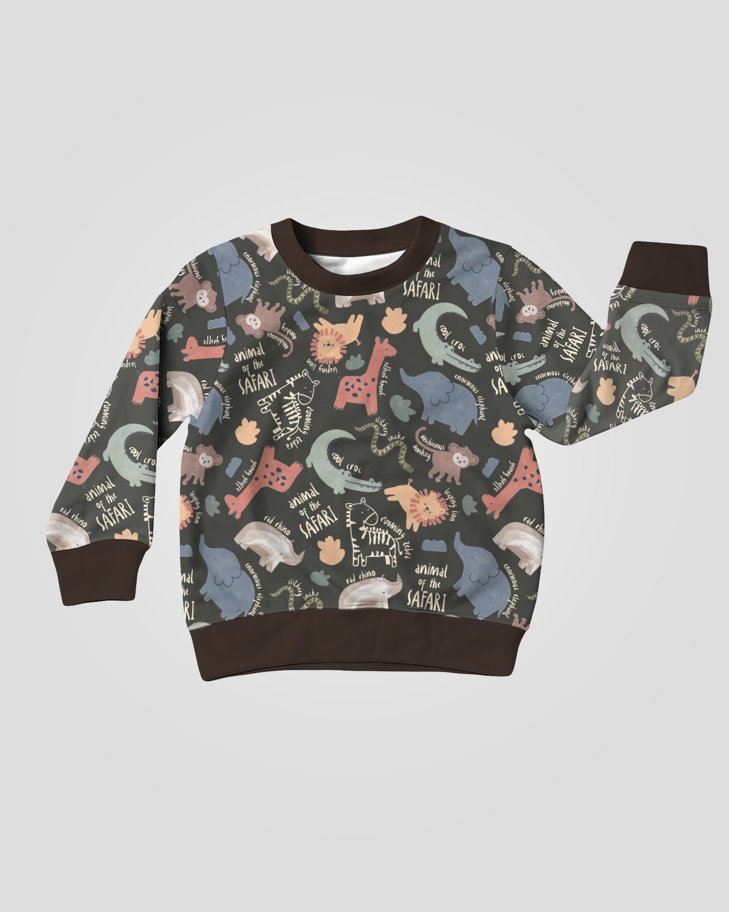A cheerful safari-themed collection featuring playful animal illustrations and soft neutral tones, crafted for breathable comfort across kids’ sleepwear, loungewear, and everyday essentials.