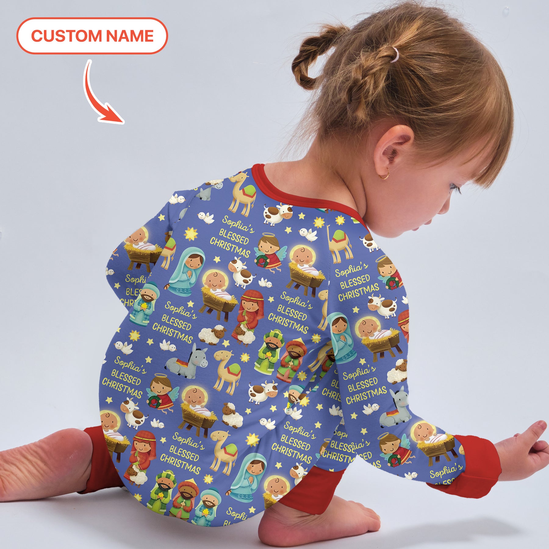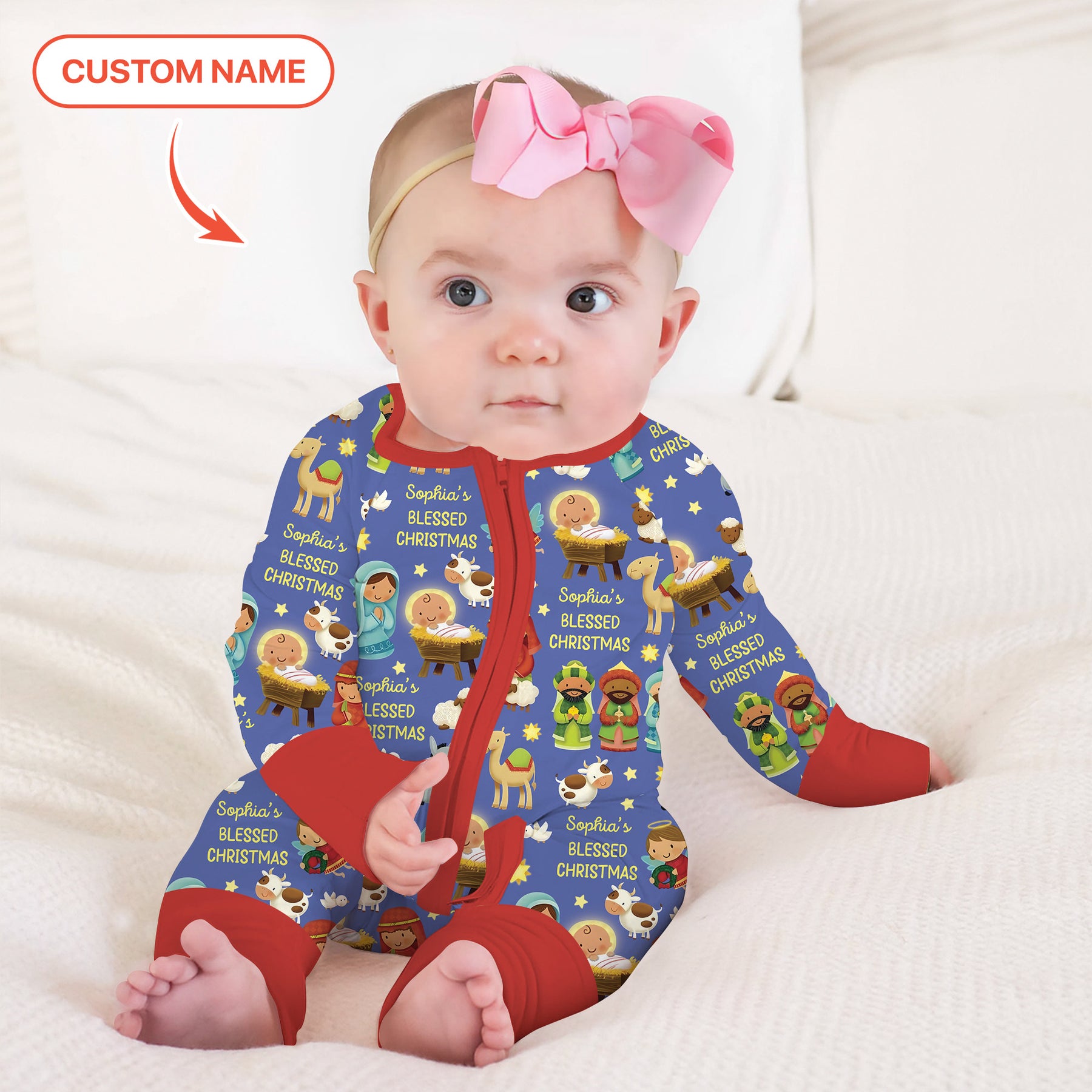 Celebrate the true meaning of Christmas with this heartwarming design! Featuring a sweet nativity scene with Mary, Joseph, baby Jesus, and adorable animals, this bamboo zippy brings comfort and joy to your little one’s first Blessed Christmas.