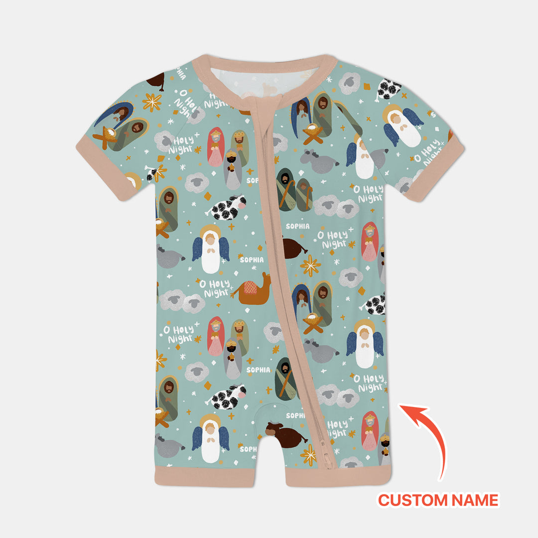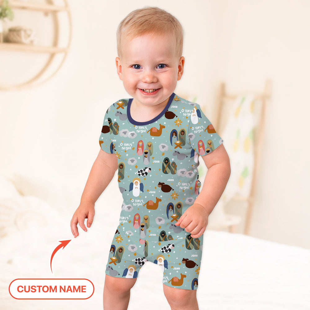 Bring the true meaning of Christmas to bedtime with our O Holy Night Custom Name Collection. Featuring a sweet Nativity scene with Mary, Joseph, Baby Jesus, animals, and guiding stars, this design captures the wonder of that holy night. Add your child’s name for a personalized touch that makes each piece extra special. Crafted from buttery-soft, breathable fabric—perfect for cozy Christmas mornings, festive nights, and snuggles by the tree.