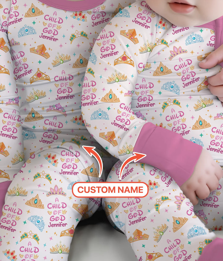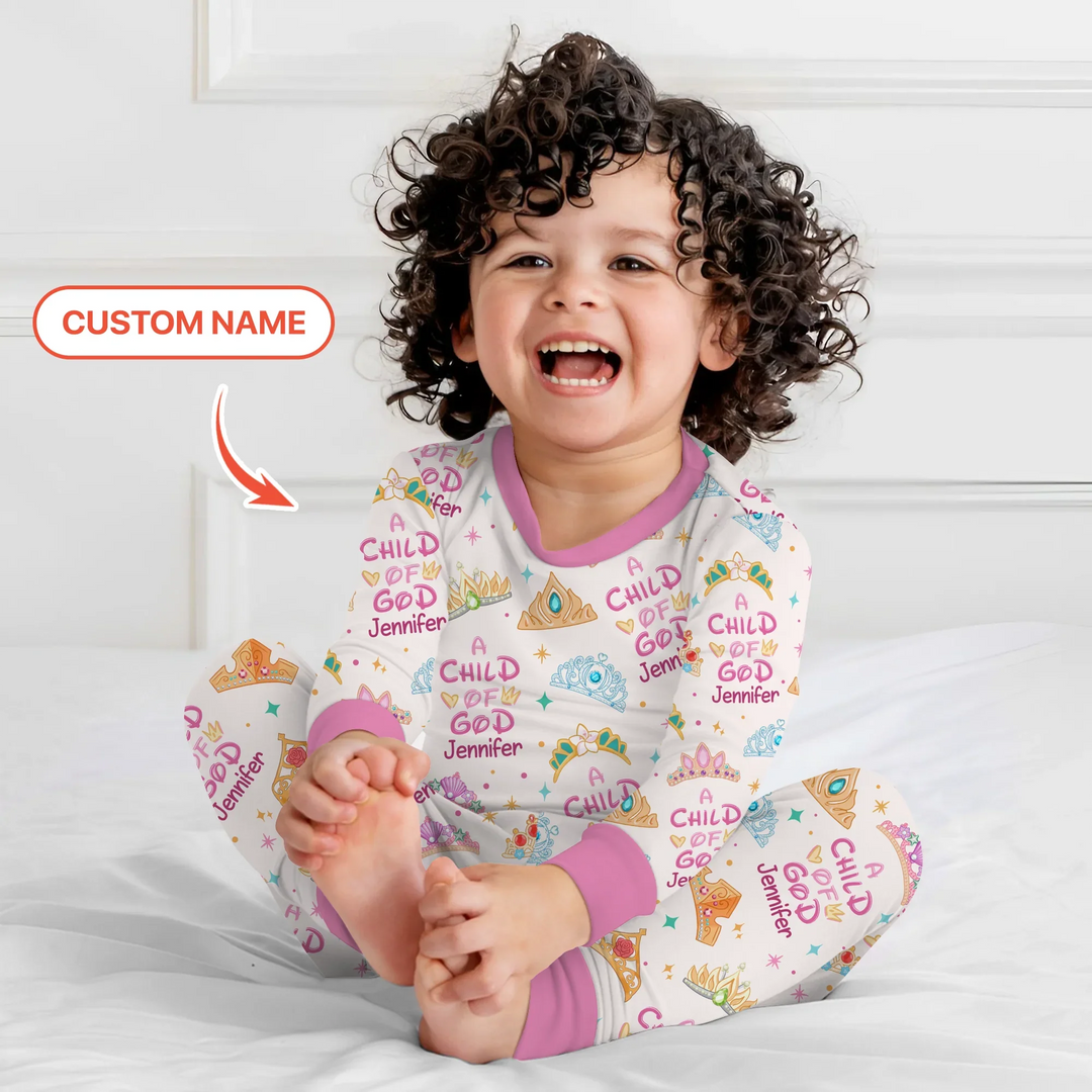 Princess A Child Of God Custom Name Two Piece Long Sleeve Pajama Set
