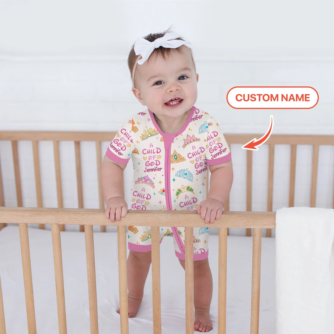 Let your little one shine with the A Child of God Princess Crowns Custom Name Collection. Adorned with sparkling tiaras, crowns, and stars, this design celebrates every girl as a precious daughter of the King. The uplifting “A Child of God” affirmation is paired with her very own name for a personal touch that feels royal and full of love. Crafted from buttery-soft, breathable fabric—perfect for bedtime, playtime, and every magical moment in between.