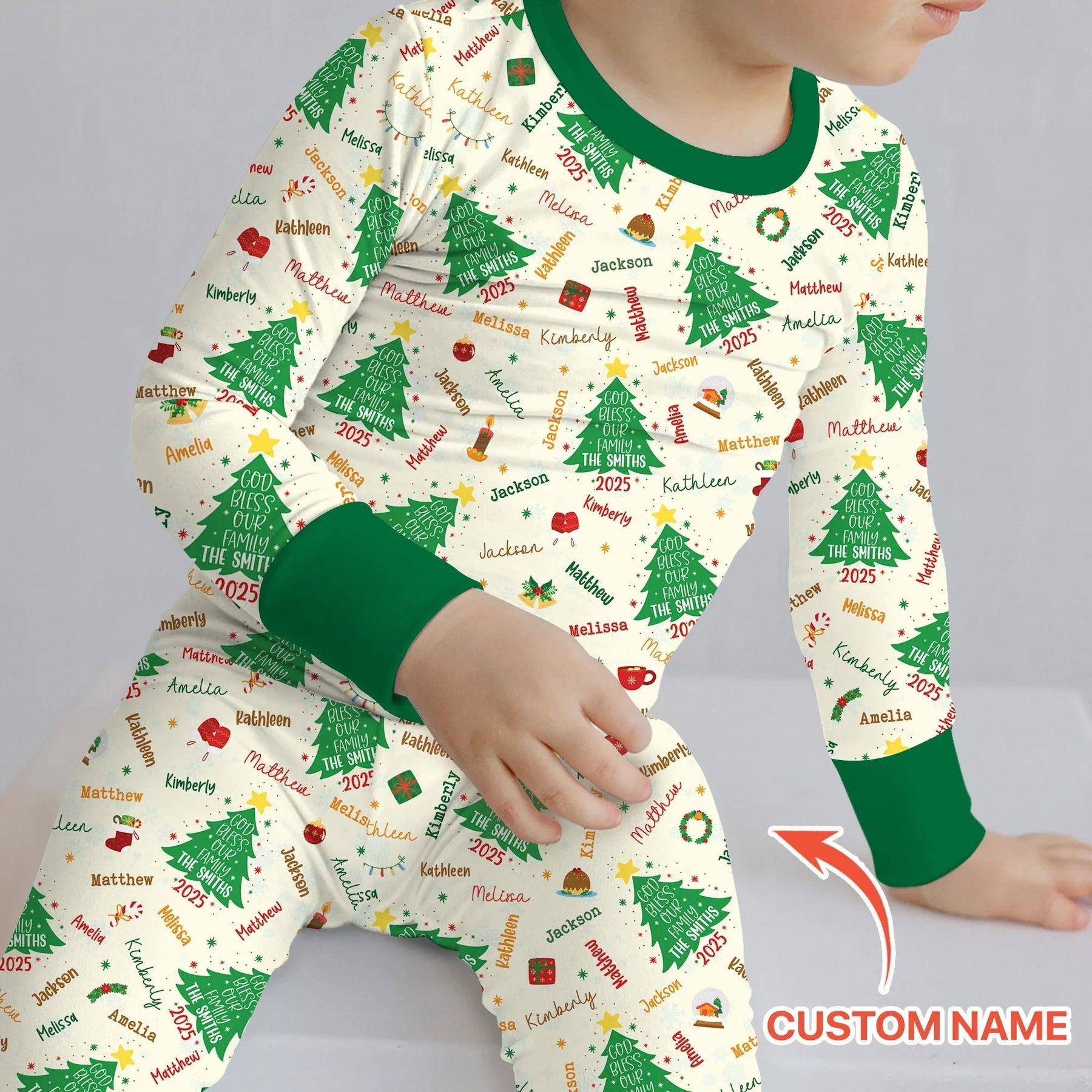 God Bless Our Family Custom Name Two Piece Long Sleeve Pajama Set , God Bless Our Family Custom Name Two Piece Long Sleeve Pajama Set - 12-18M