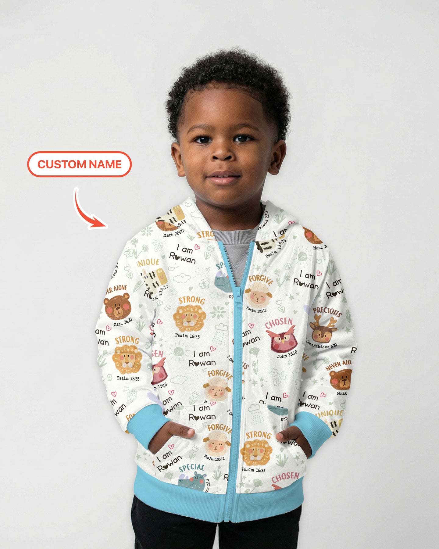 Gear up for faith-filled fun with our “God’s Little Zoo” Collection! These bamboo pieces for babies and kids are covered with adorable animals and uplifting Bible affirmations—reminding little ones of their God-given worth, uniqueness, and strength. Personalize it with your child’s name for a one-of-a-kind keepsake they’ll cherish. Made from ultra-soft, breathable bamboo fabric, they’re perfect for active days, cozy nights, and every joyful moment in between.