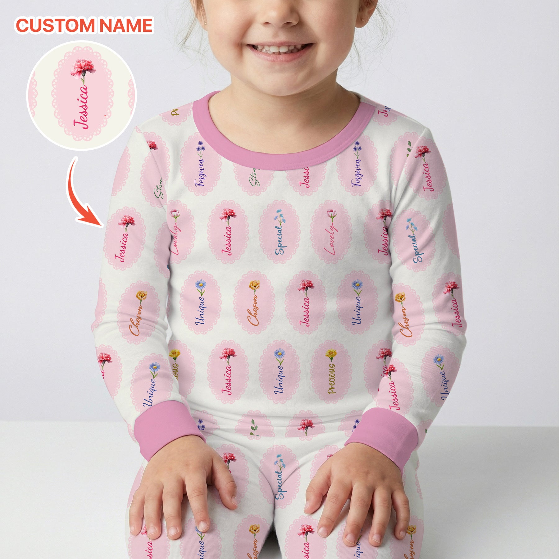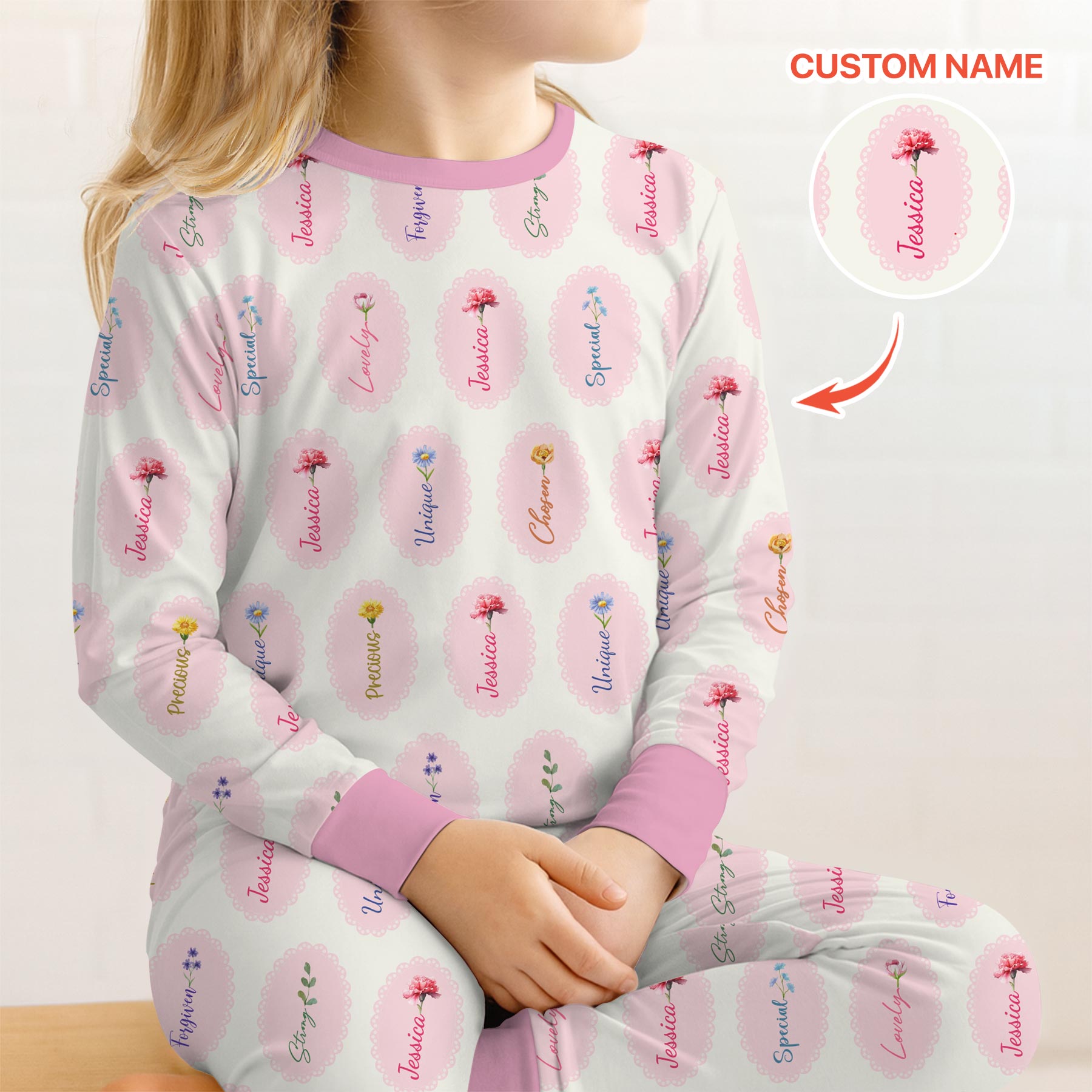 God Says I Am Birthmonth Flowers Custom Name Two Piece Long Sleeve Pajama Set