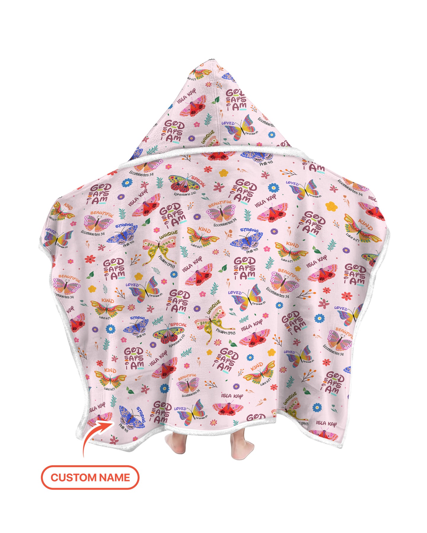 Custom Name God says I am Butterfly Wearable Hooded Blanket