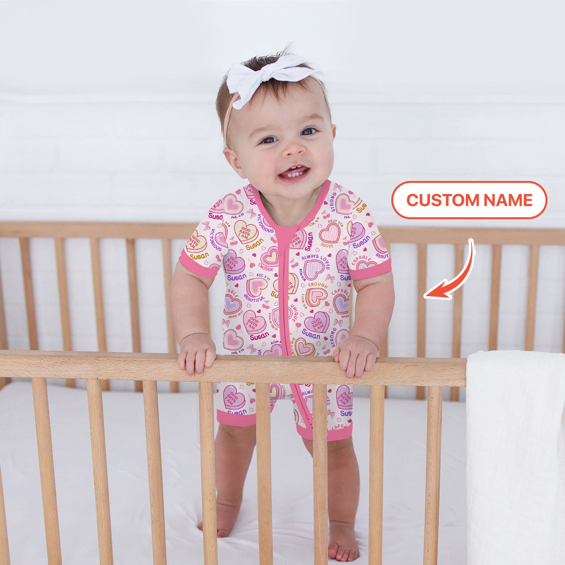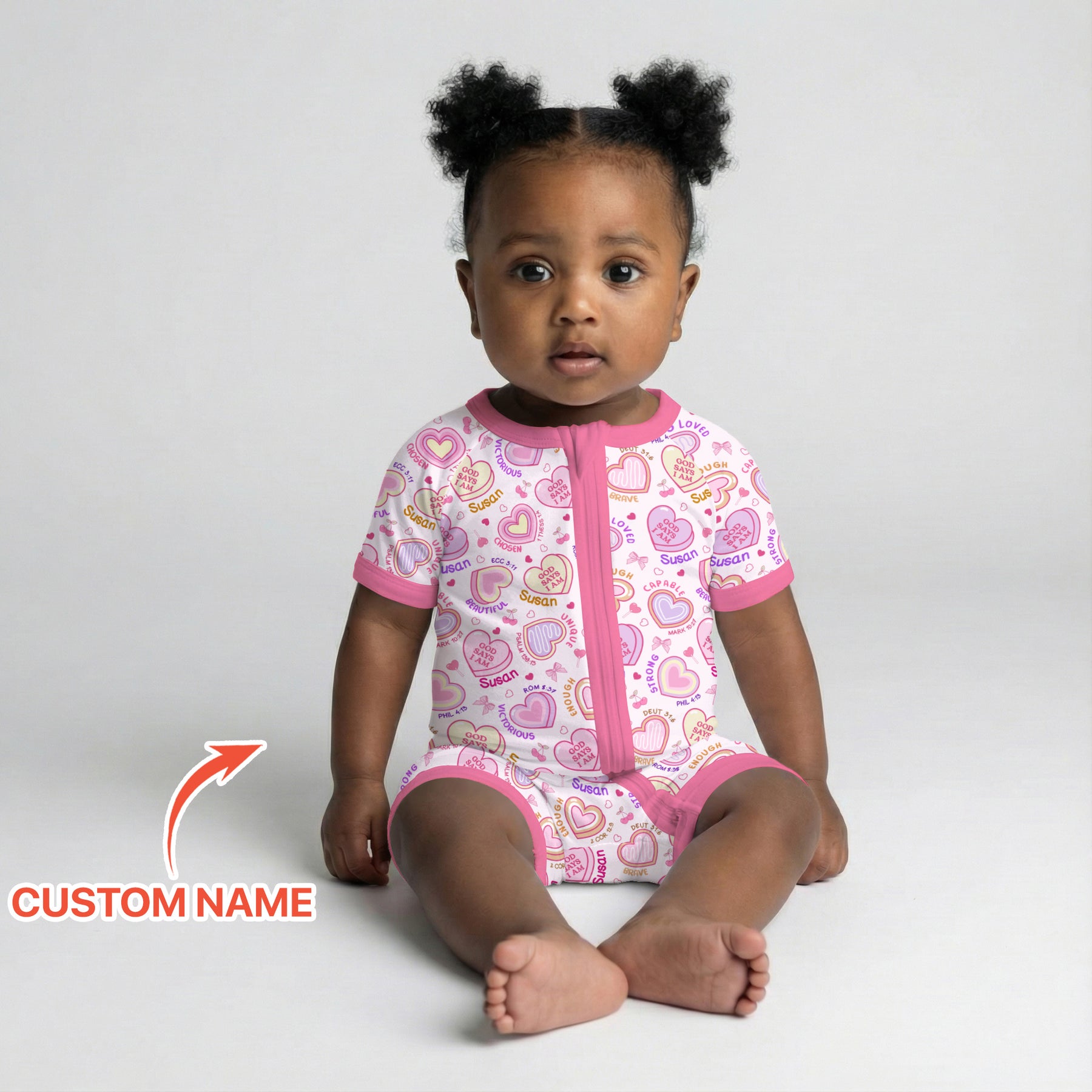 Soft pink tones, playful heart motifs, and your custom name make this set extra meaningful—perfect for bedtime cuddles, Valentine’s season, Mother’s Day, or everyday moments of connection.
