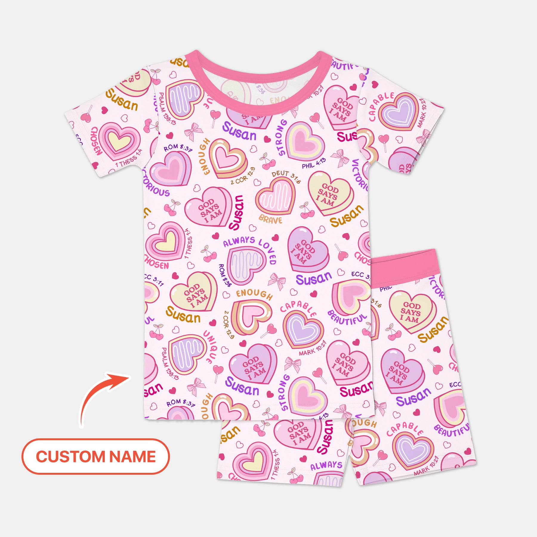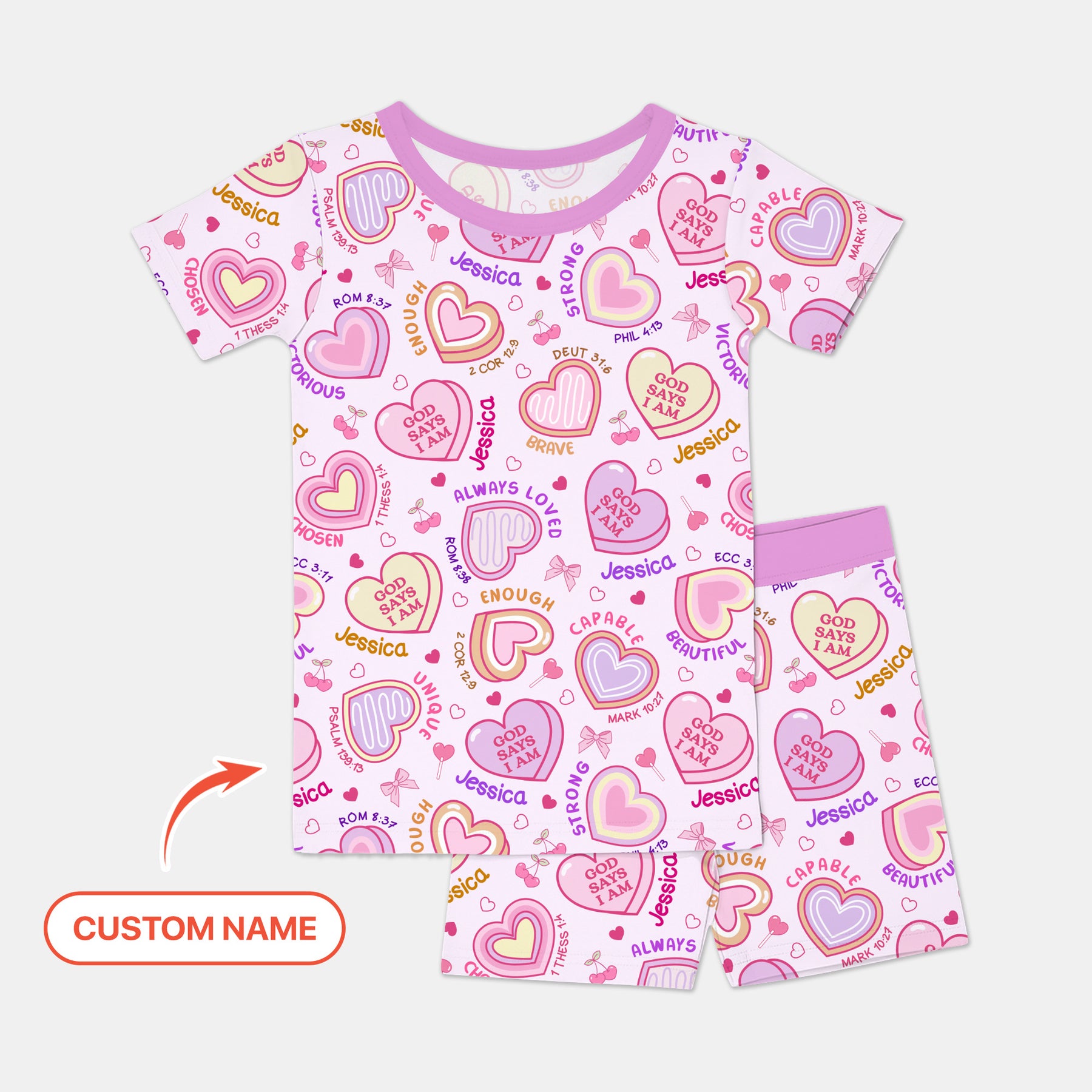 God Says I Am Sweet Heart Matching Mommy & Baby Two Piece Short Sleeve Shorts Pajama Set