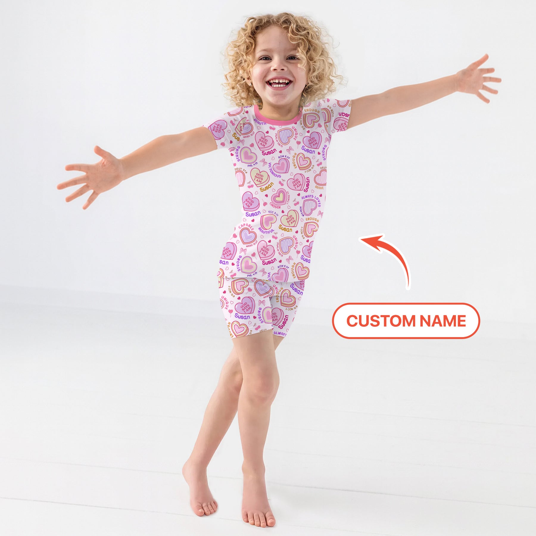 Soft pink tones, playful heart motifs, and your custom name make this set extra meaningful—perfect for bedtime cuddles, Valentine’s season, Mother’s Day, or everyday moments of connection.