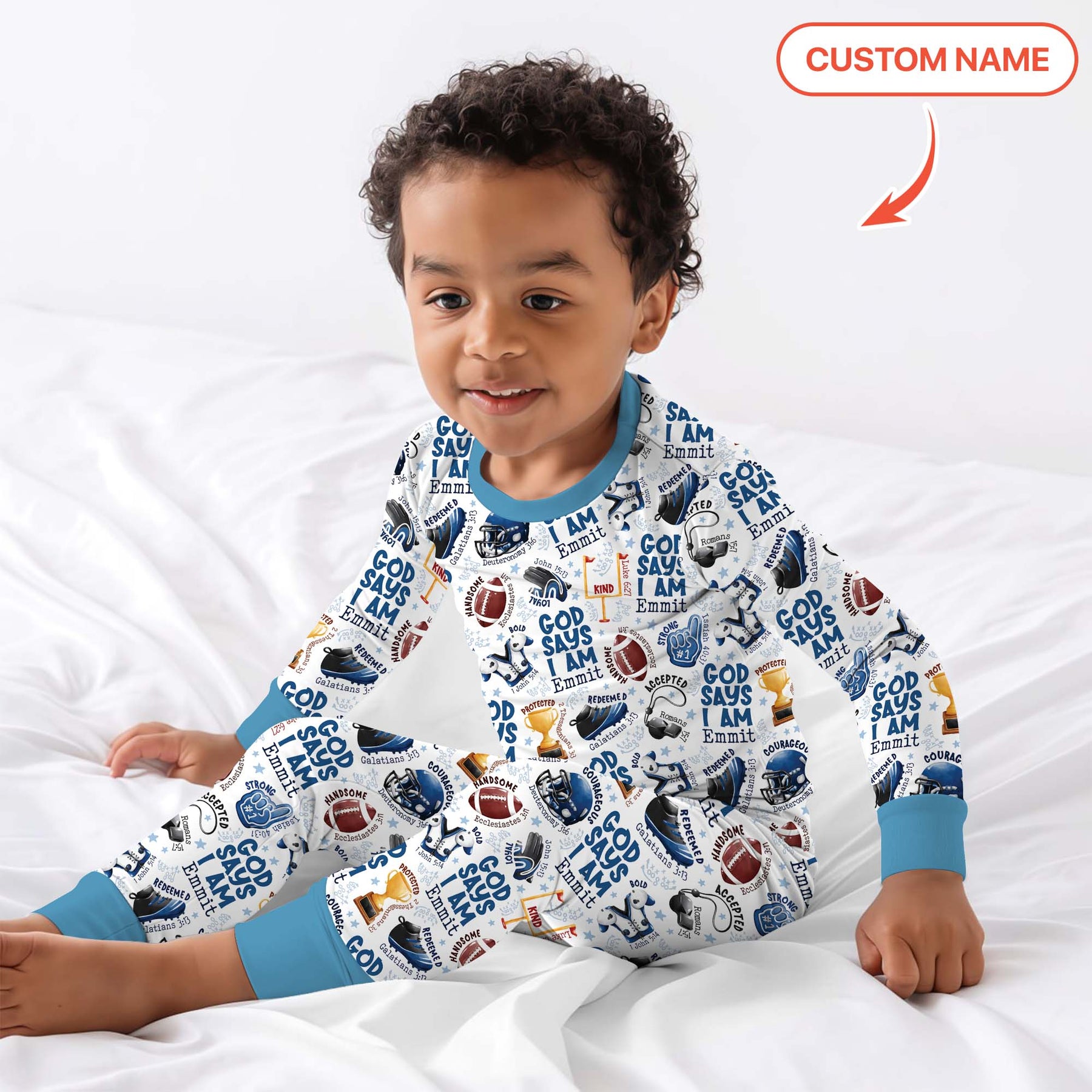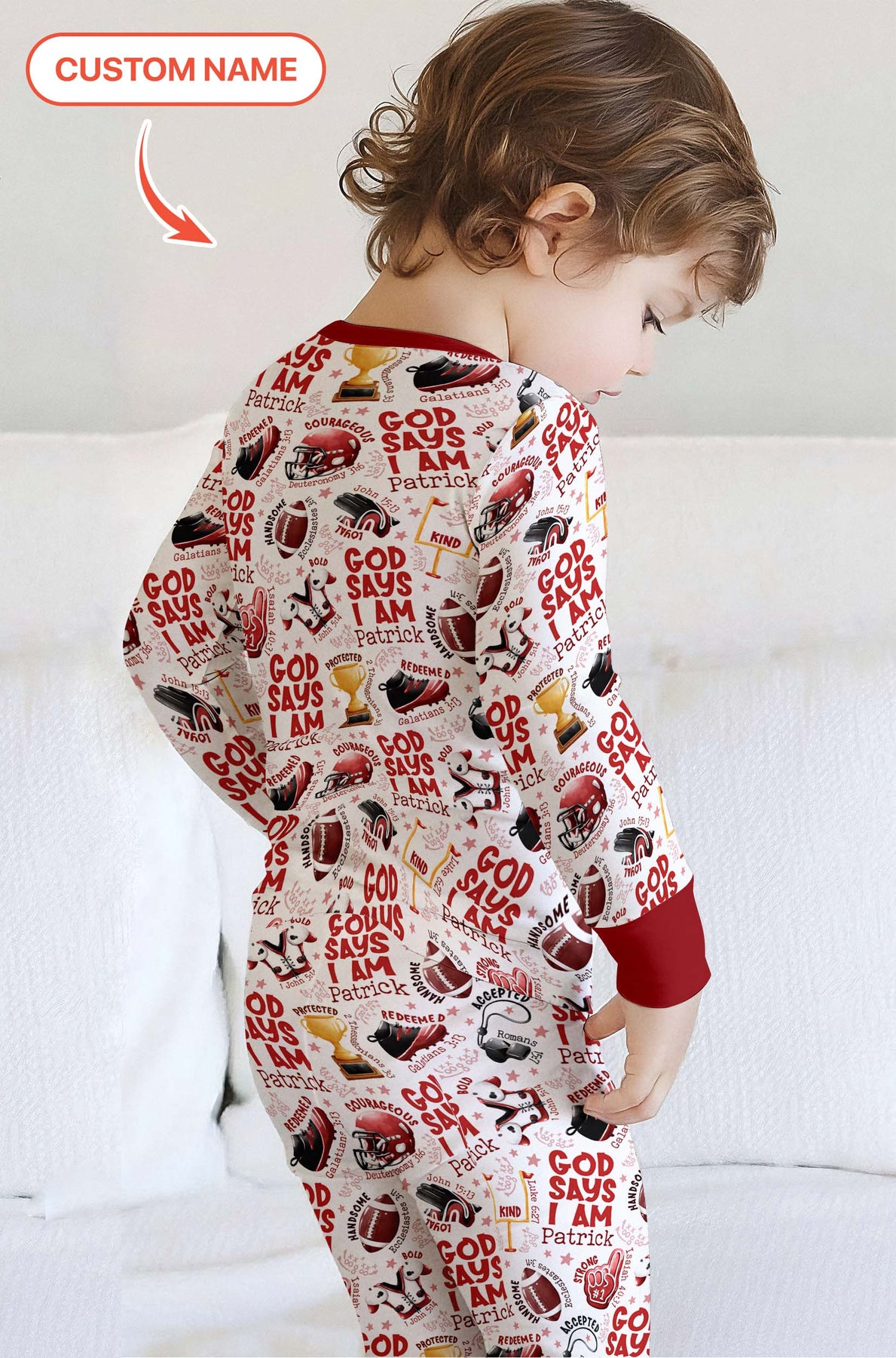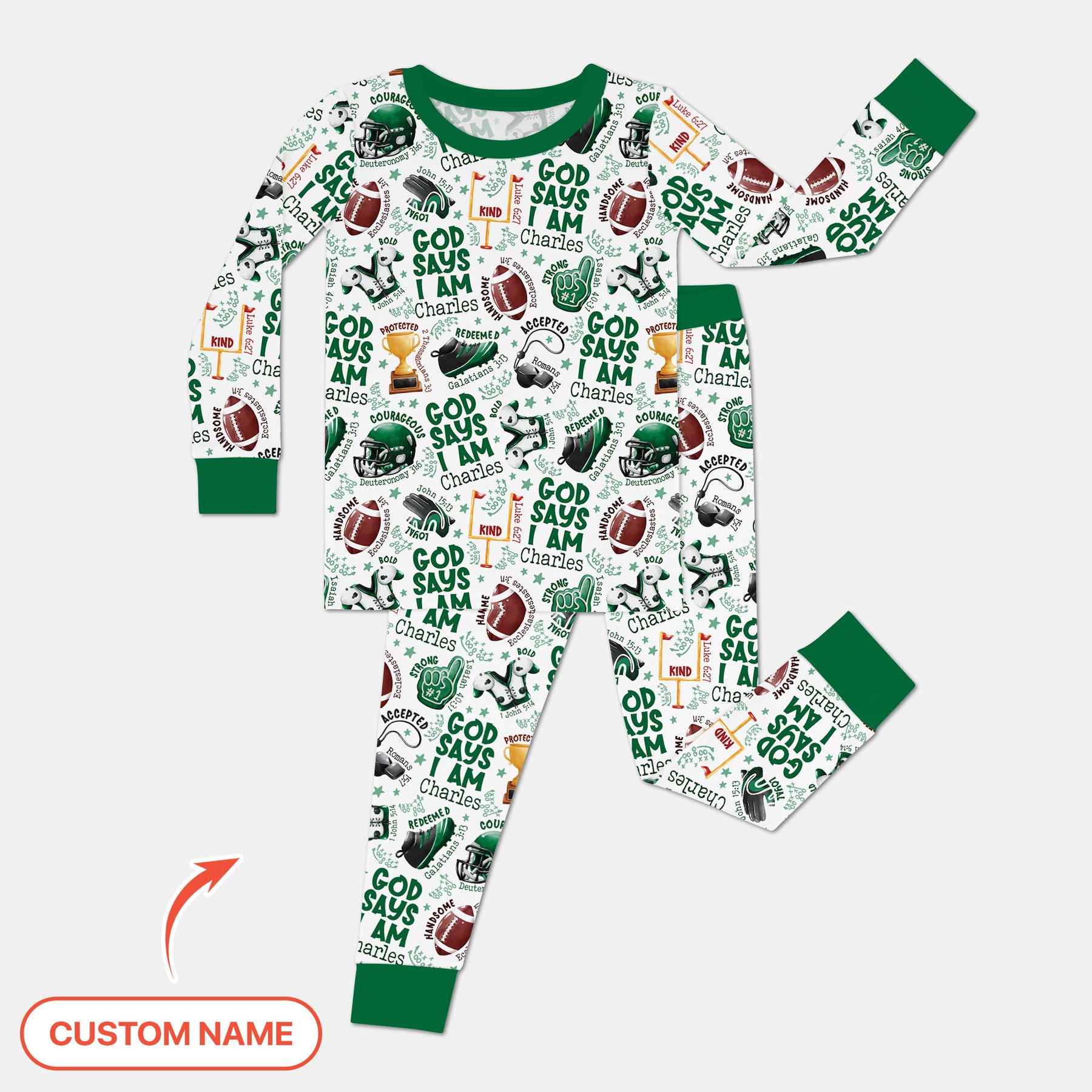 God Says I Am Touch Down Time Custom Name Two Piece Long Sleeve Pajama Set