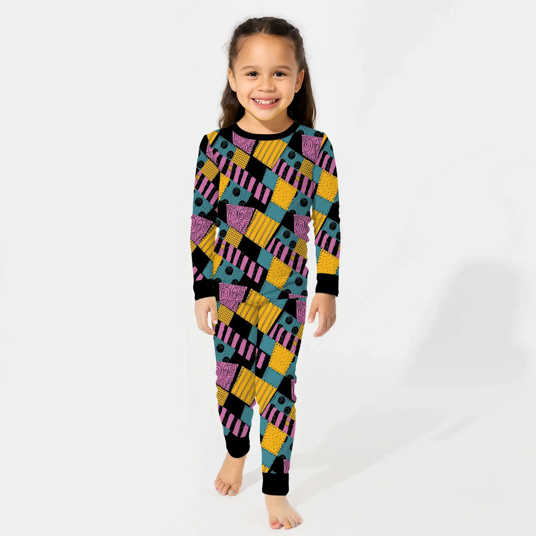 Halloween Patchwork Cartoon Two Piece Long Sleeve Pajama Set