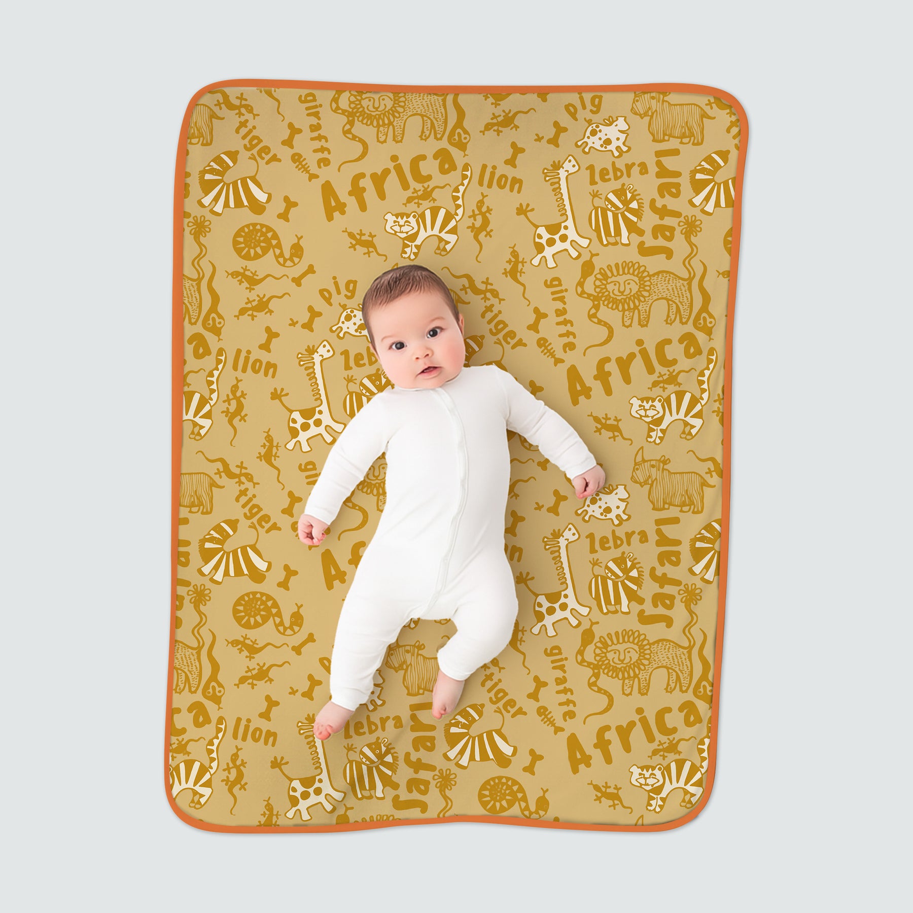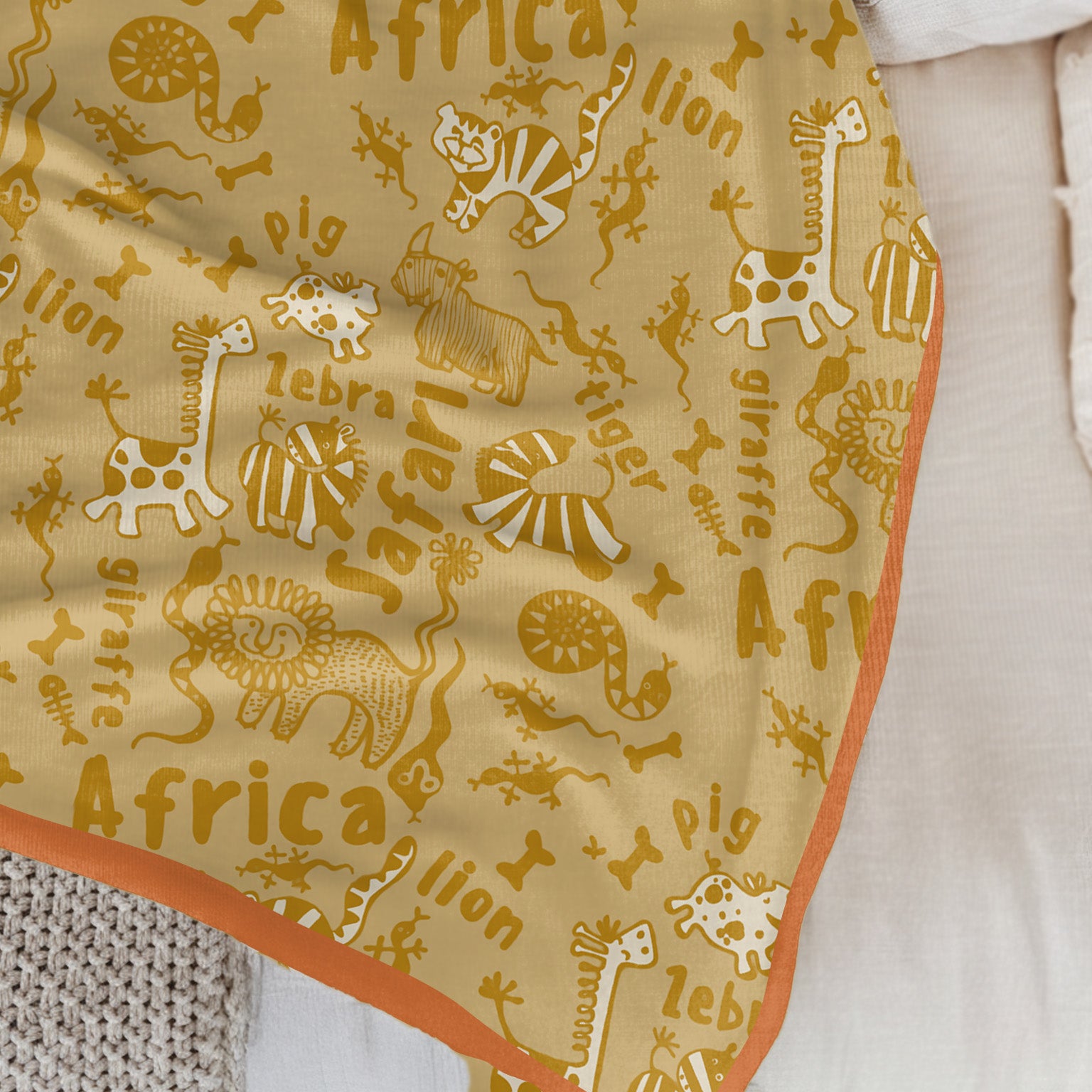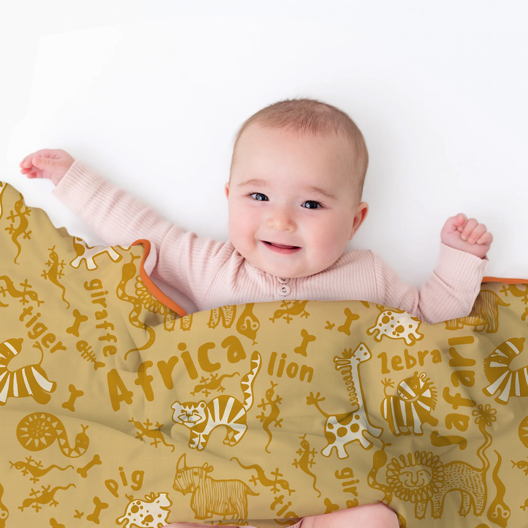 Safari Africa Collection – A playful African safari print featuring lions, giraffes, and jungle icons, made with ultra-soft, breathable fabric and available across matching sleepwear and accessories for babies and kids.