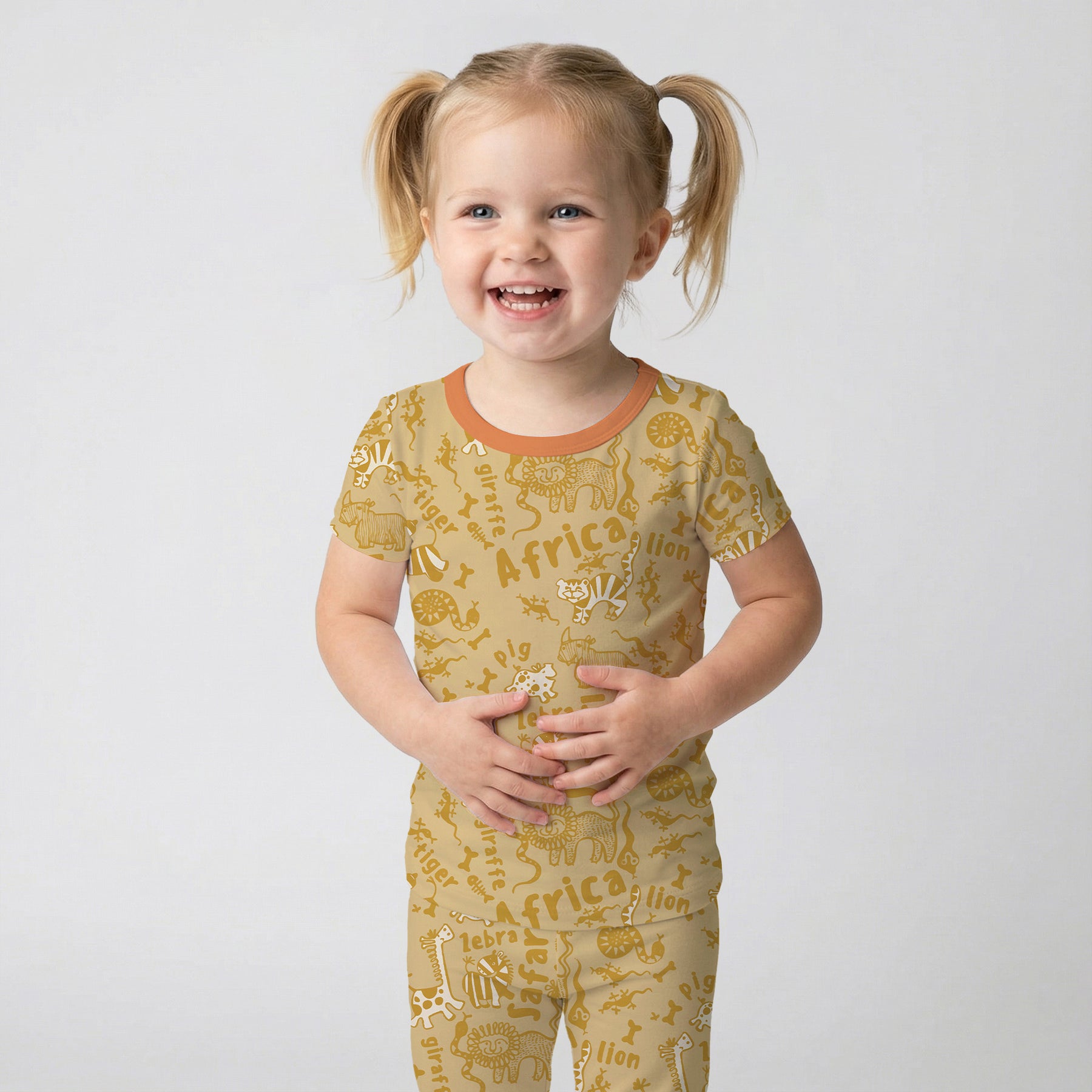 Handdrawn African Animals Two Piece Short Sleeve Pajama Set