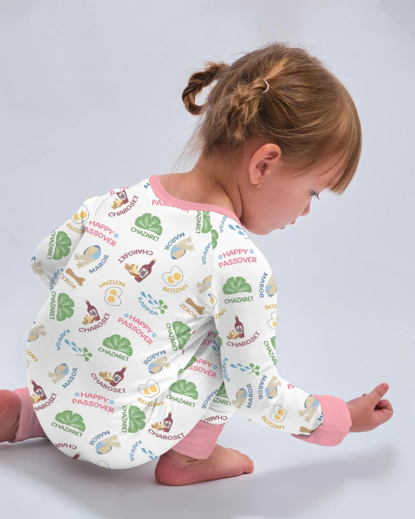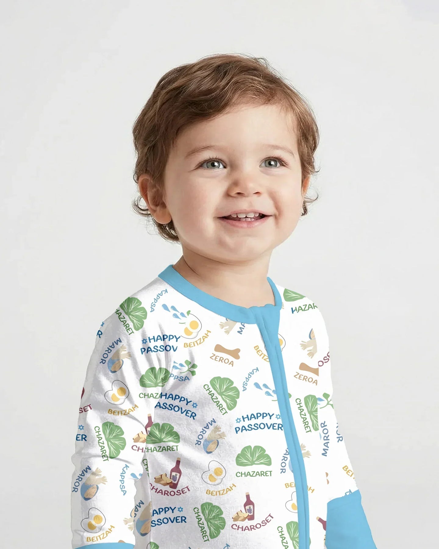 Celebrate the joy of Pesach together with the Happy Passover Matching Family collection, designed especially for Jewish families in the US. Colorful icons of the Seder plate—maror, charoset, beitzah, zeroa, karpas, and chazeret—dance across a crisp white background with playful “Happy Passover” lettering for a fun, kid-friendly look.