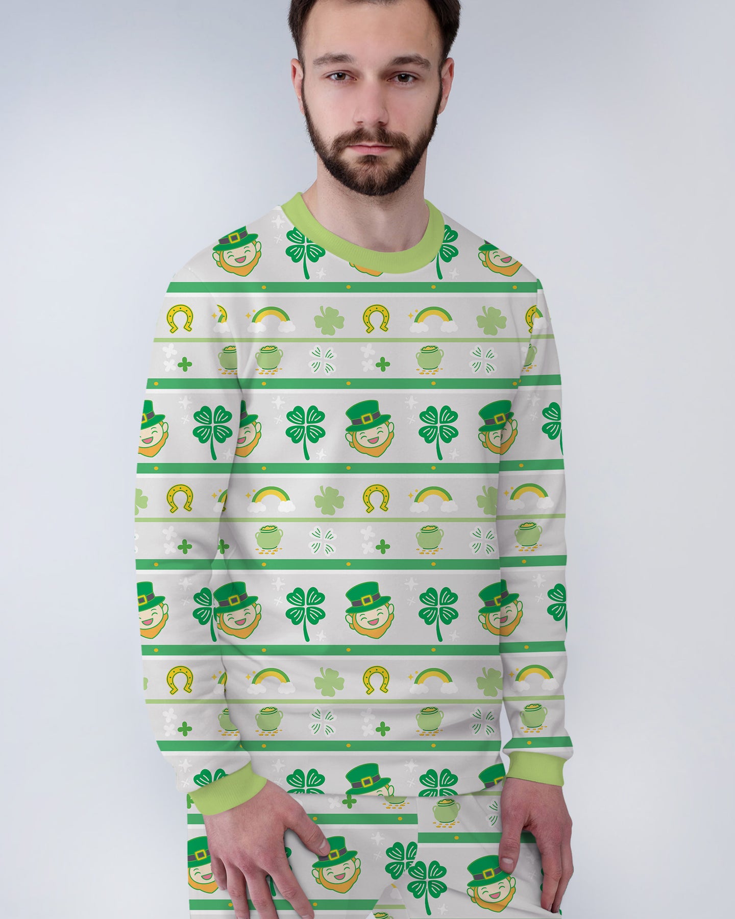 A festive St. Patrick’s Day collection featuring cheerful leprechauns, shamrocks, and lucky icons, designed in soft, breathable fabrics for baby and kids sleepwear, loungewear, and everyday outfits.