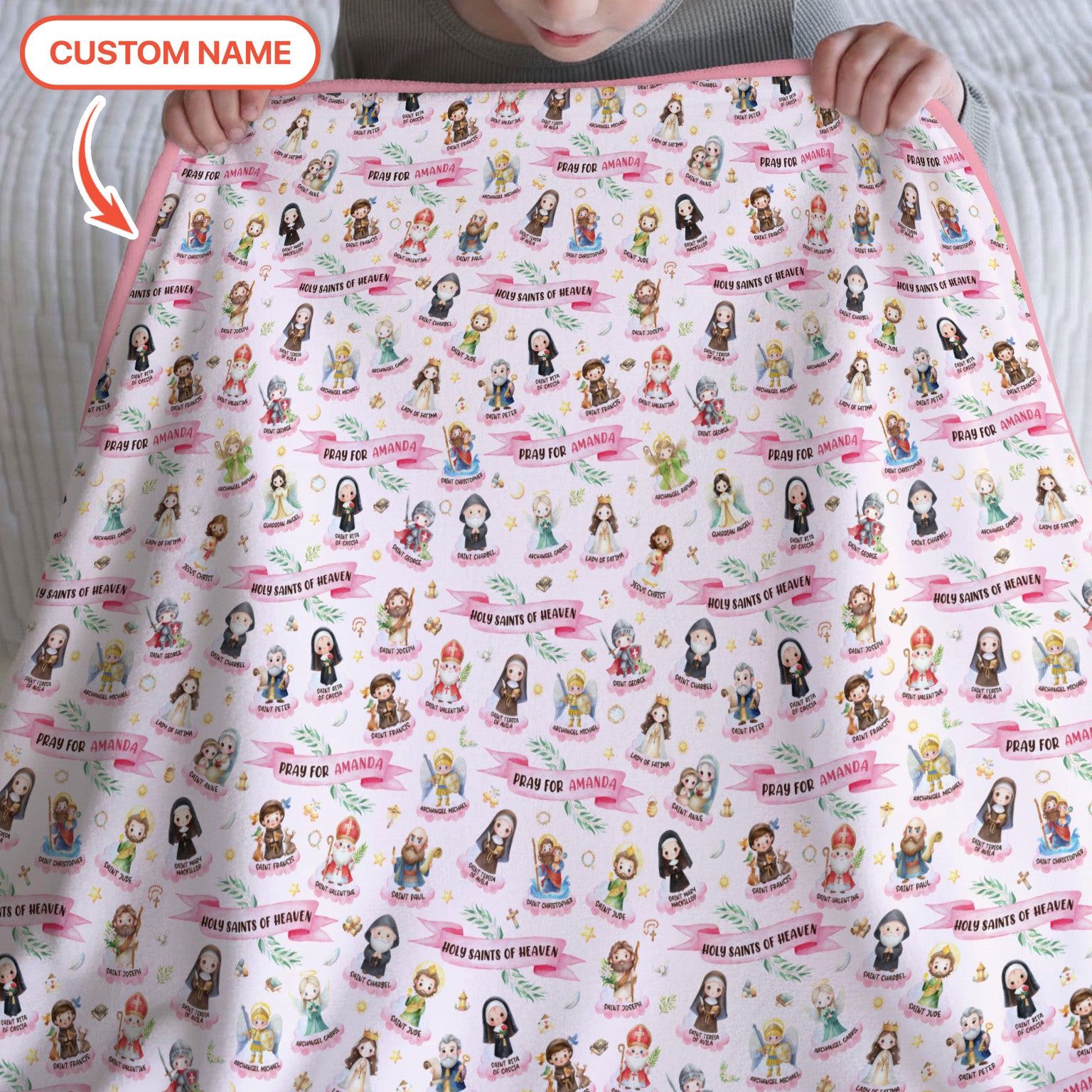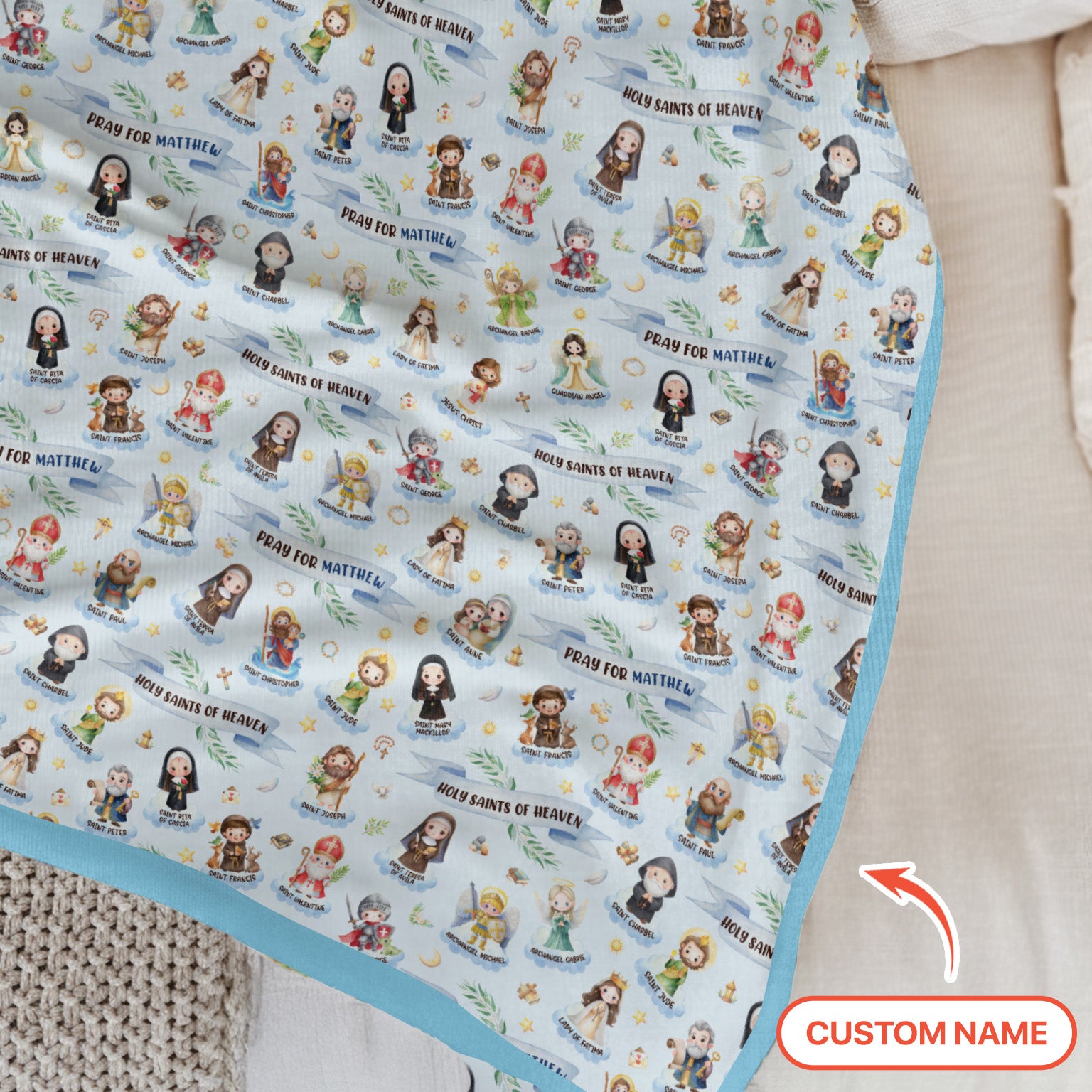 Holy Saints of Heaven Custom Name Toddler Blanket