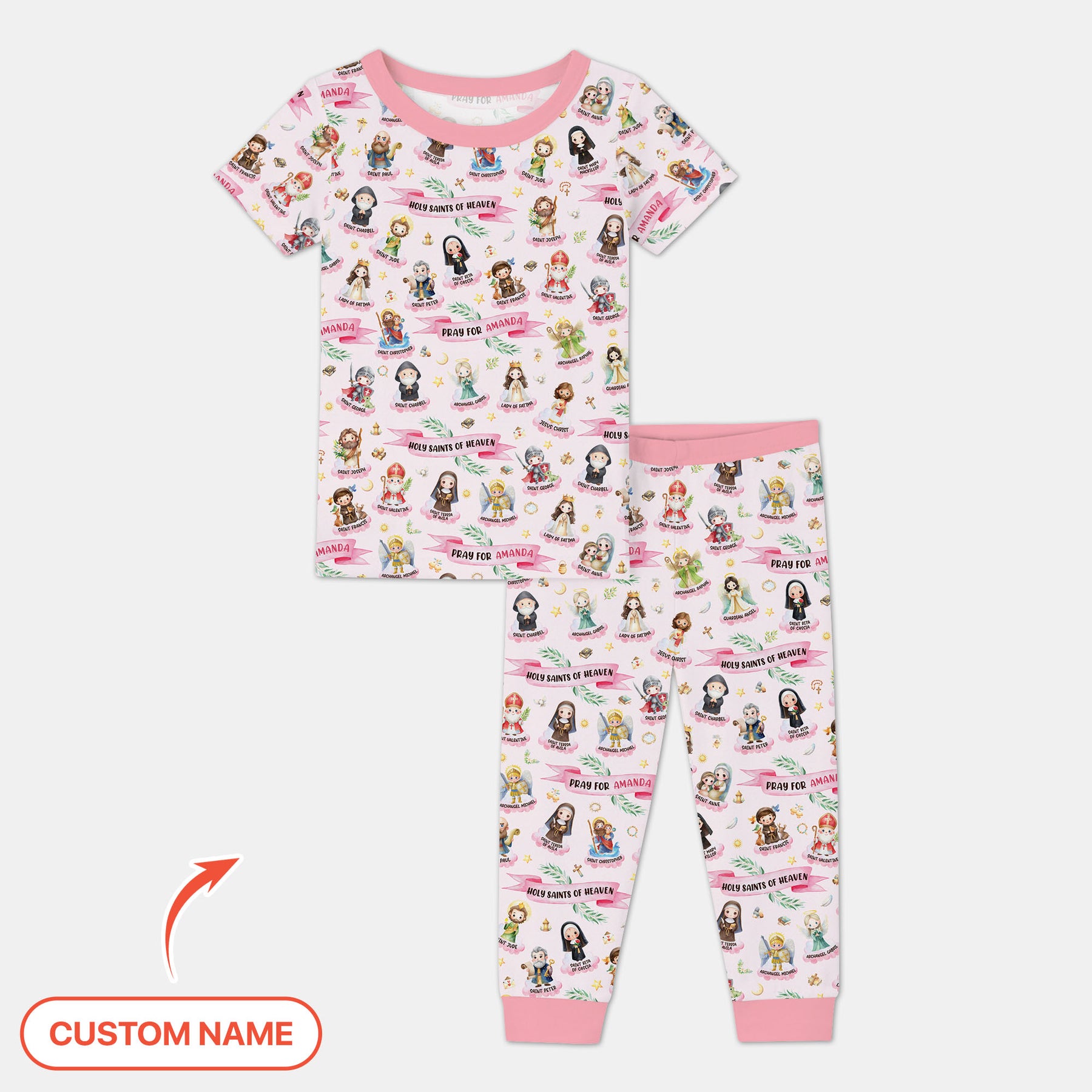 Holy Saints of Heaven Custom Name Two Piece Short Sleeve Pajama Set