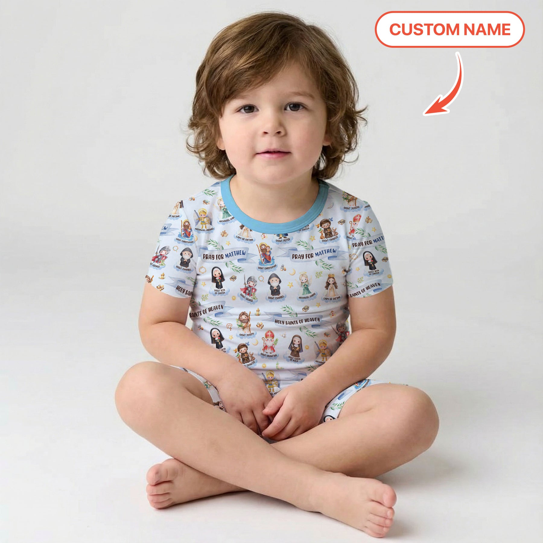 Holy Saints of Heaven Custom Name Two Piece Short Sleeve Shorts Pajama Set