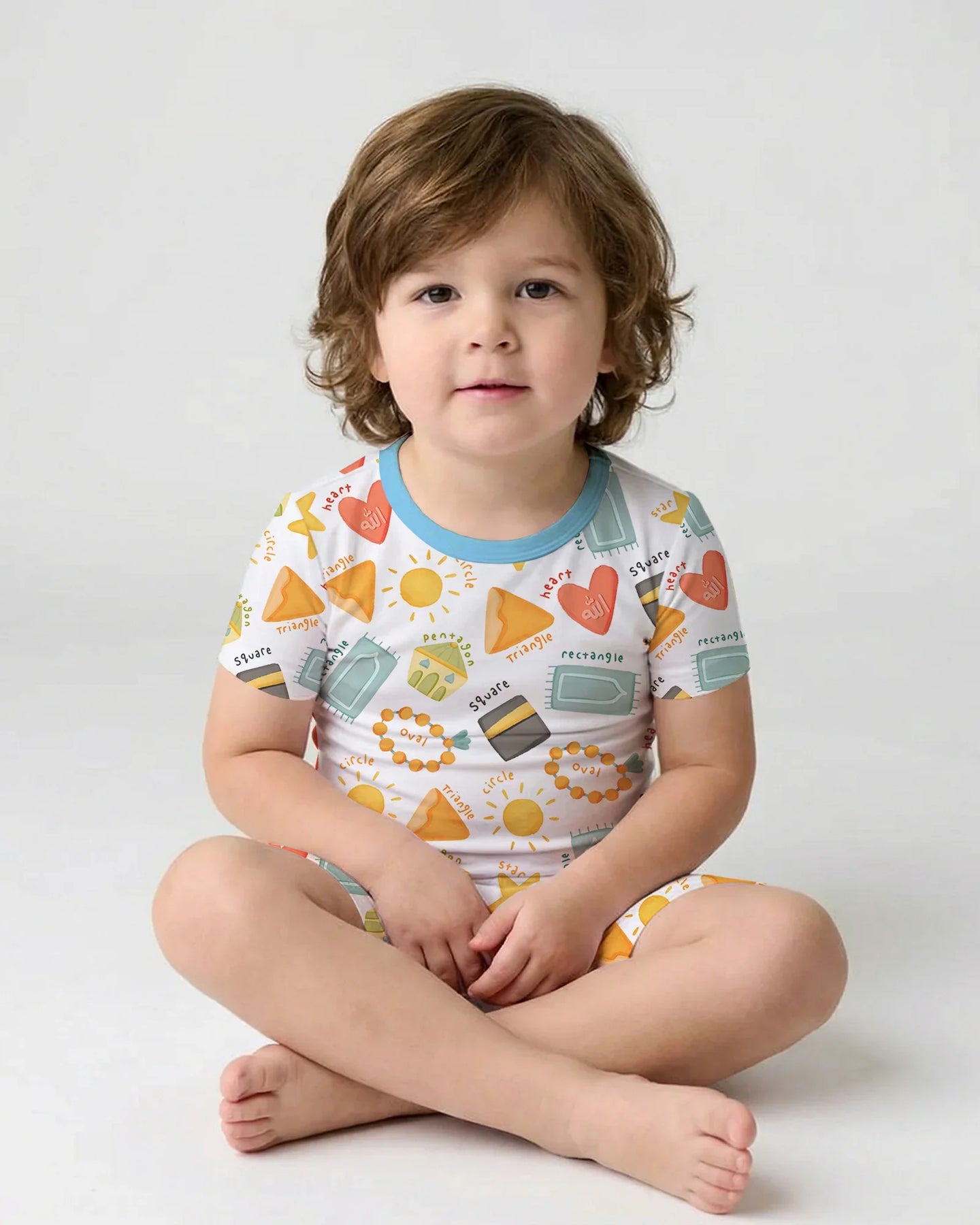 Celebrate Islamic artistry with the Islamic Shapes collection, featuring timeless geometric patterns—stars, crescents, triangles, suns, and interlocking motifs—in vibrant sunset hues of orange, teal, and yellow on crisp white. Rooted in centuries-old tradition, these designs symbolize unity, infinity, and divine harmony, perfect for introducing little ones to cultural pride.