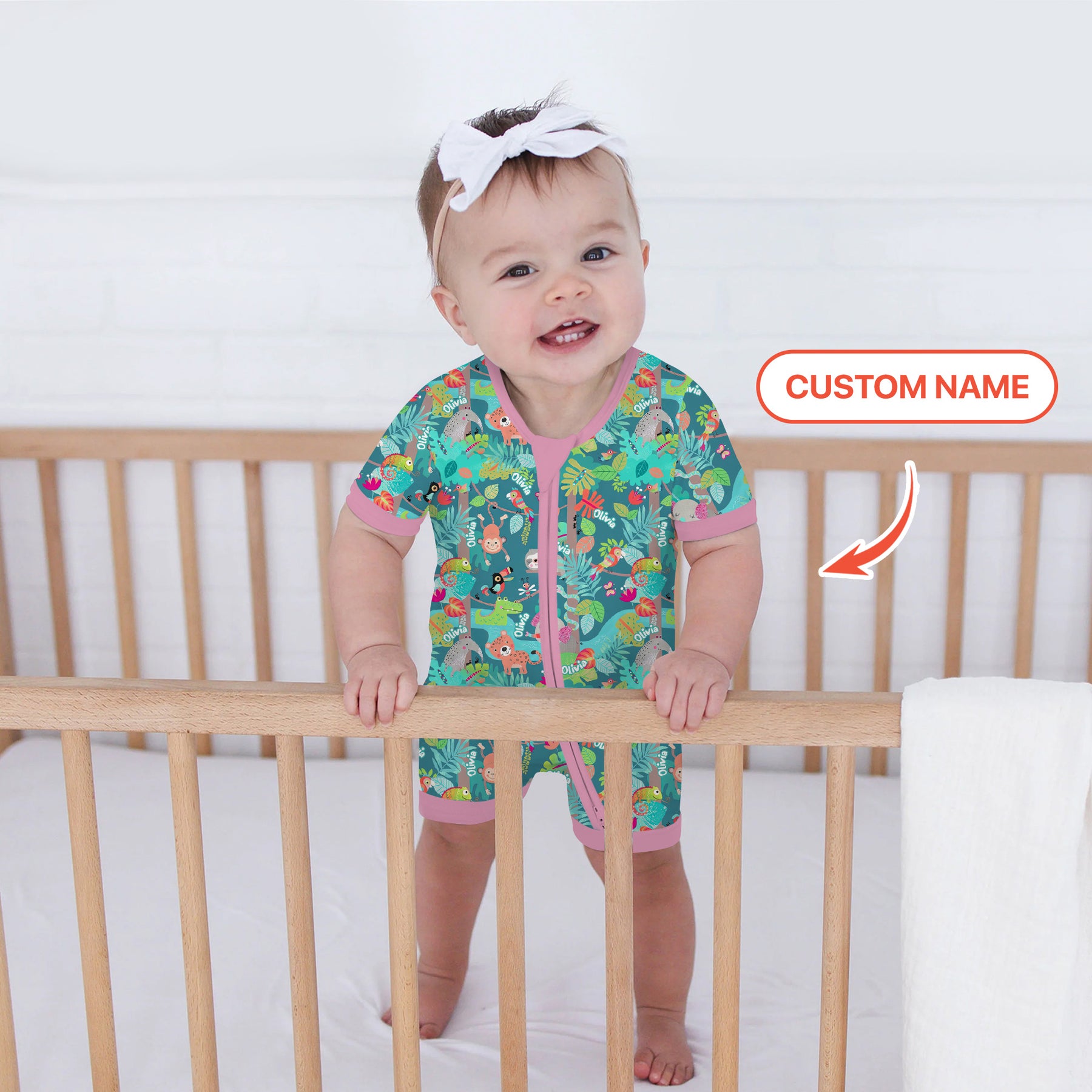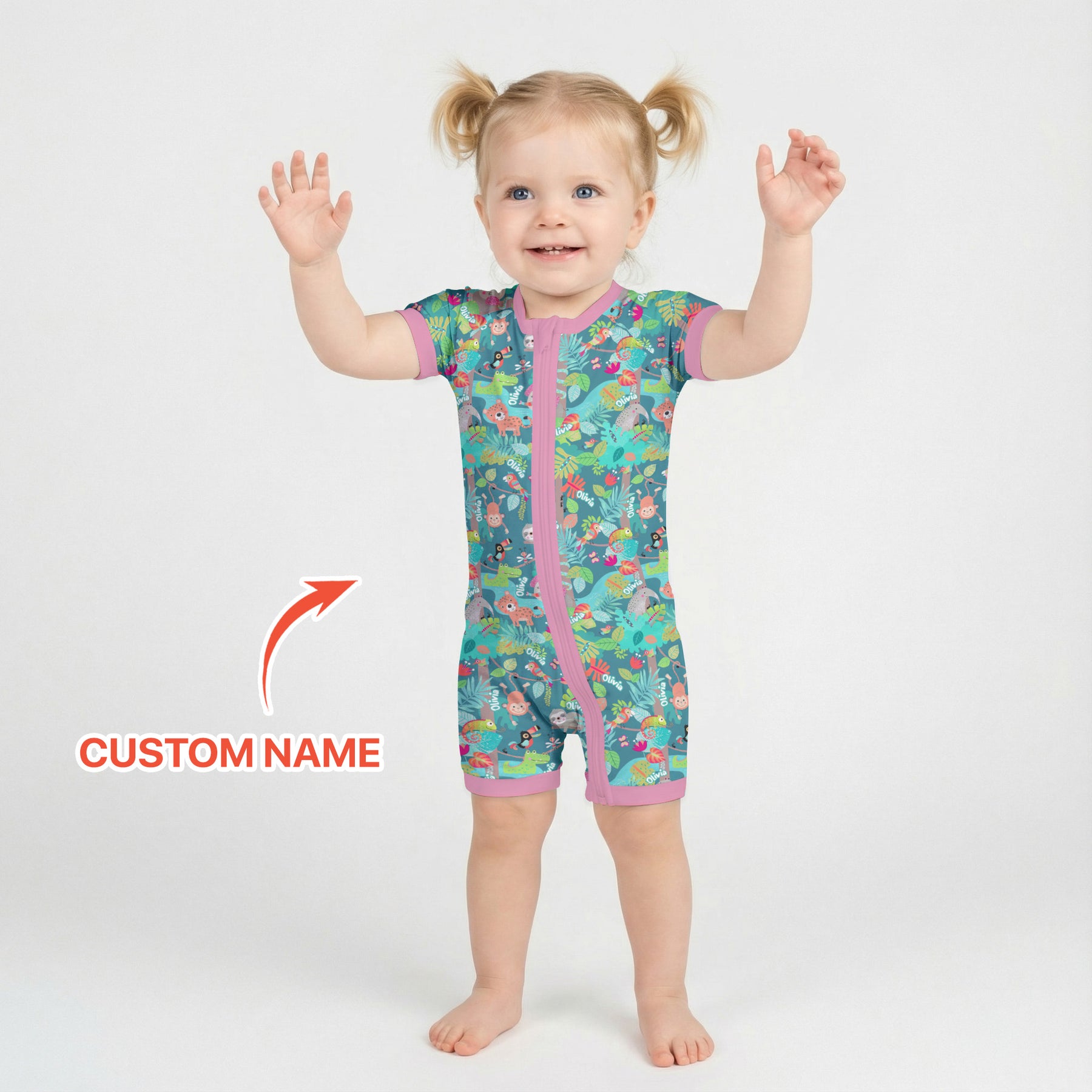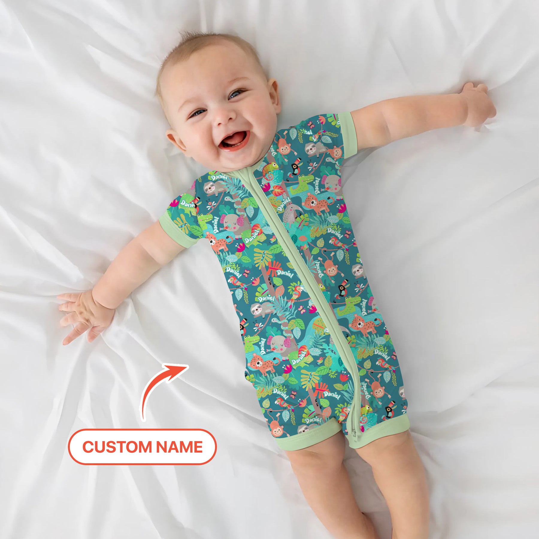 Let your little one drift into dreamland with the Jungle Buddy Adventure pajama set, where playful jungle friends and bright, cheerful colors turn bedtime into a fun exploration. Featuring adorable animals, lush tropical details, and your child’s custom name printed throughout, this set feels truly personal and extra special.