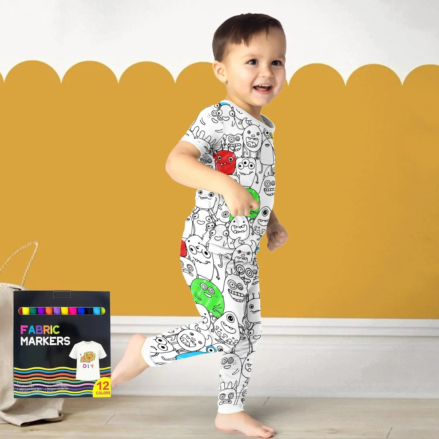 This spook-tacular two-piece set isn’t just a cozy bedtime outfit — it’s a canvas for imagination. Kids can design their own monster using washable fabric markers (not included), colouring in creepy-cute characters, scary shapes, or silly faces to match their unique Halloween spirit.