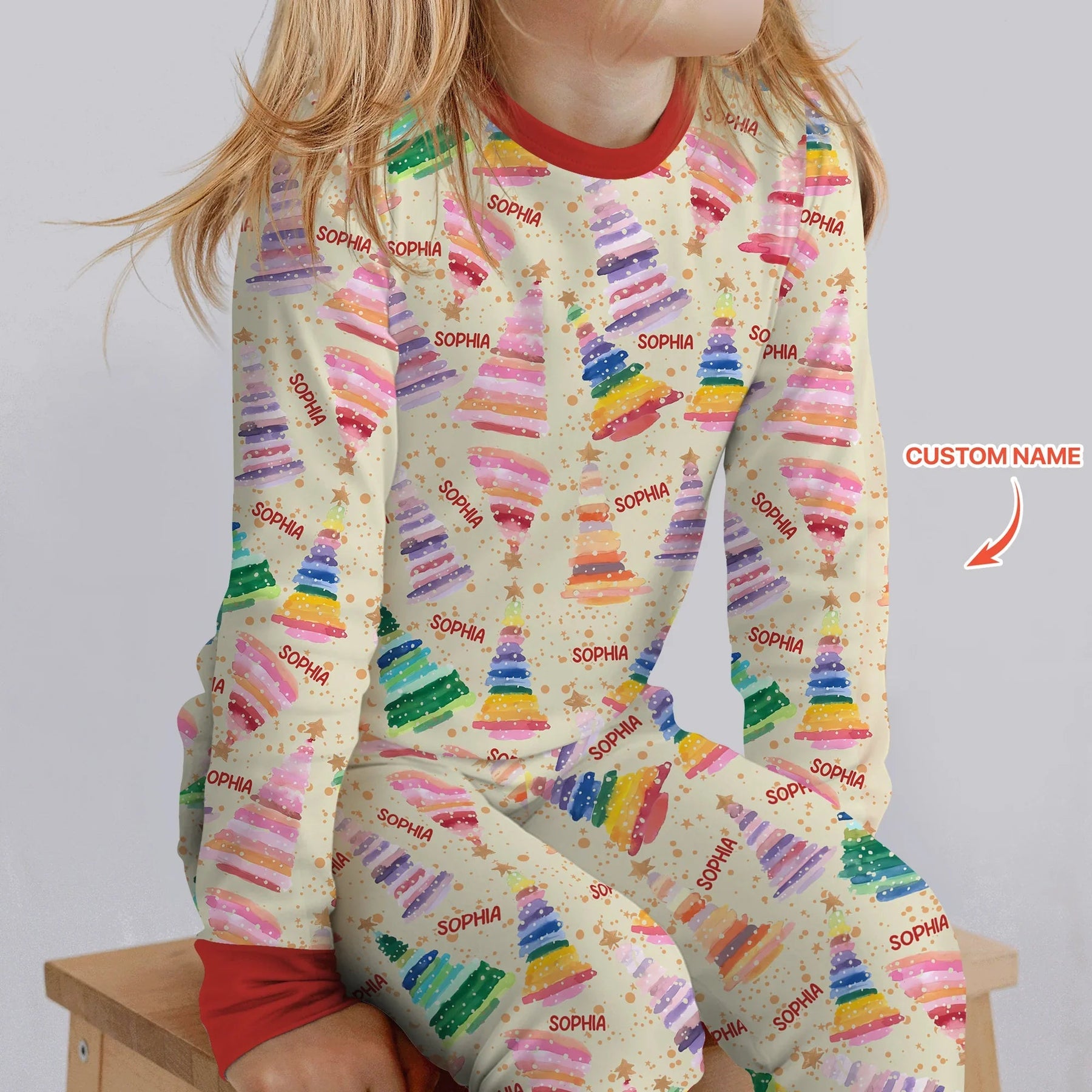 Personalized Twinkle Christmas Trees Two Piece Long Sleeve Pajama Set