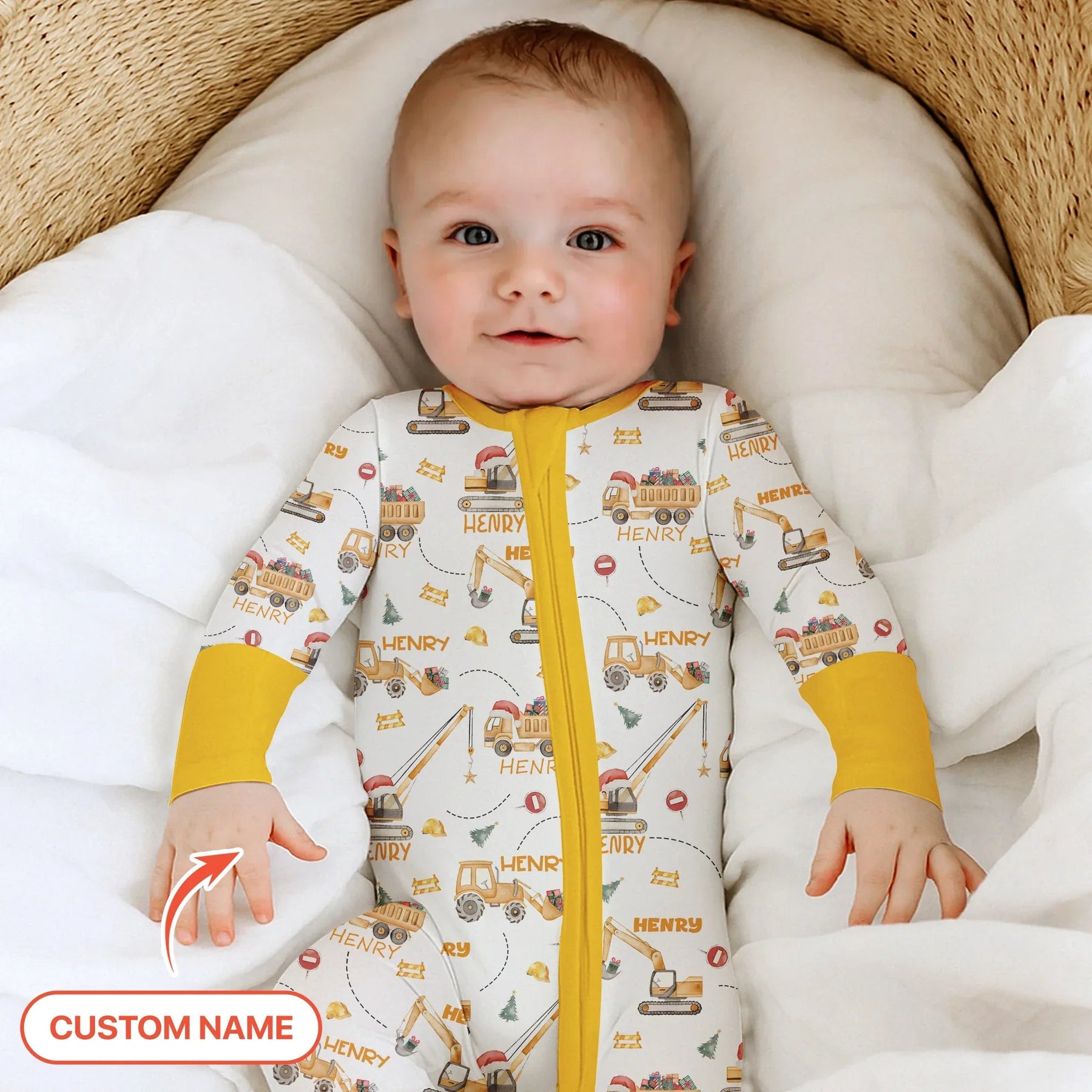 Perfect for kids who dream of dump trucks, tractors, and cranes, this collection combines the fun of construction with the joy of the holidays. Each cozy pajama set features cheerful vehicles wearing Santa hats, twinkling Christmas trees, and snowy details that make bedtime feel like a festive worksite!